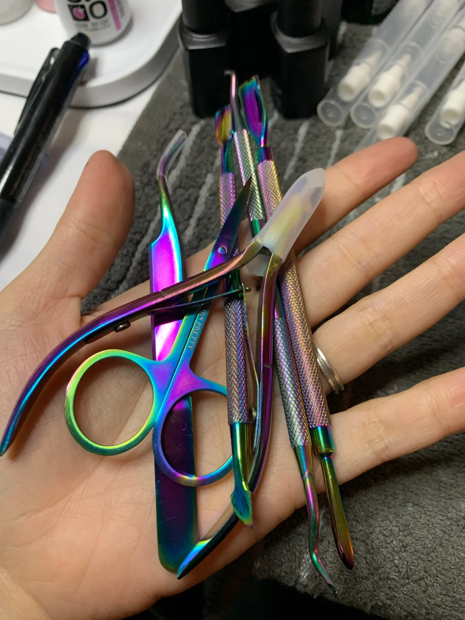 инструменты хорошие, заказываю не в первый раз. Предыдущими пользуюсь около года, н чего не ржавеет даже от дезинфикатора, цвет не меняет. Всё хорошо