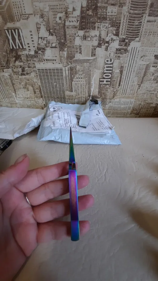 Товар хорошо упакован, красивый переливающий цвет, немного туповат. посылка пришла быстро