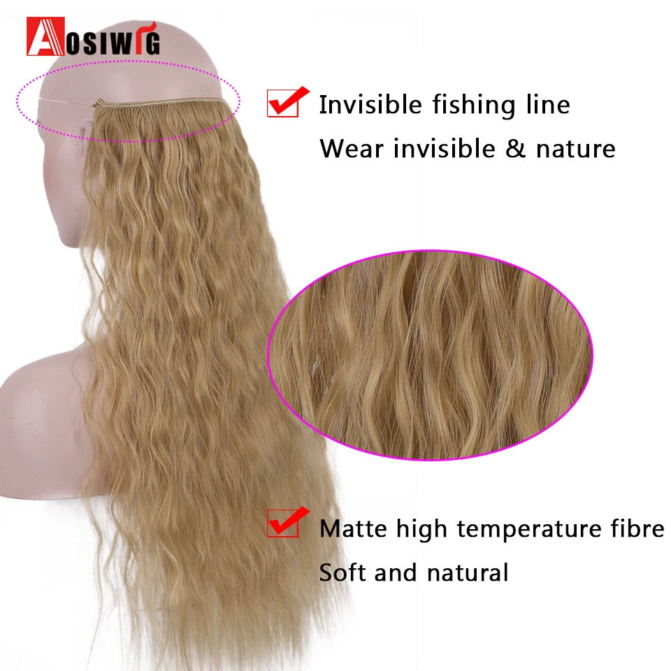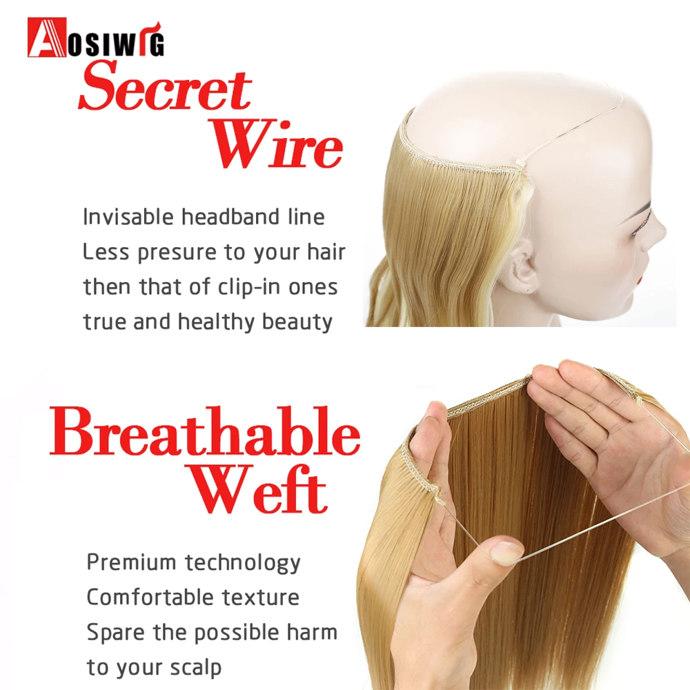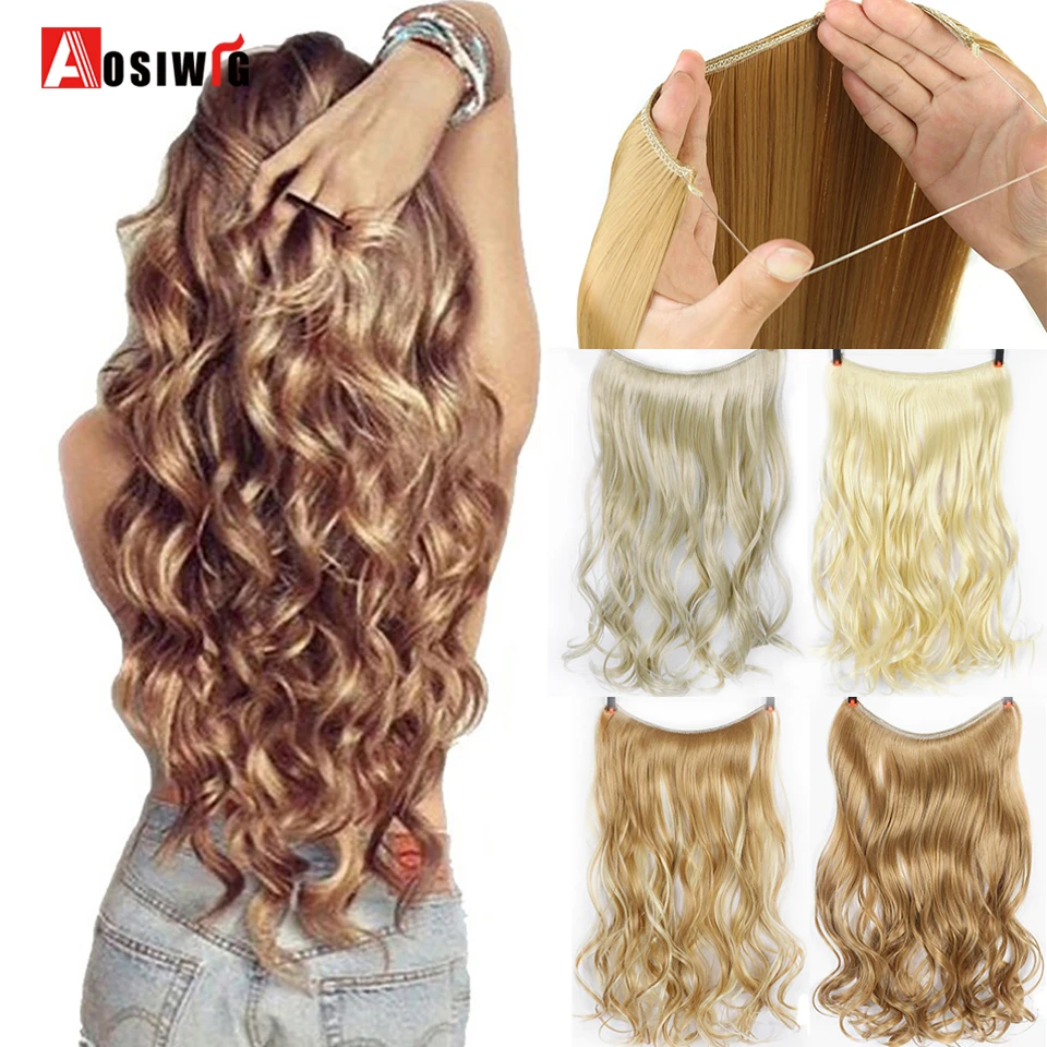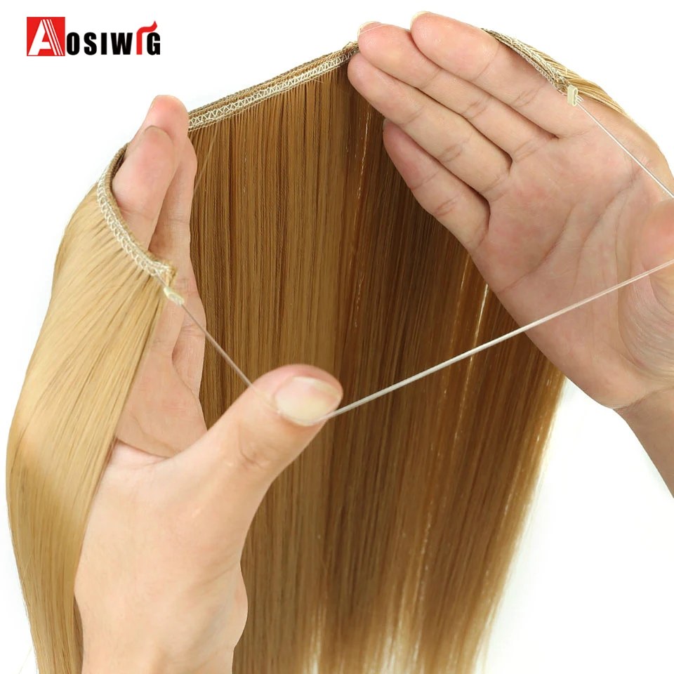 AOSIWIG Синтетические длинные невидимые волосы для наращивания лески кусочки волос термостойкие без зажимов натуральные волнистые шиньоны