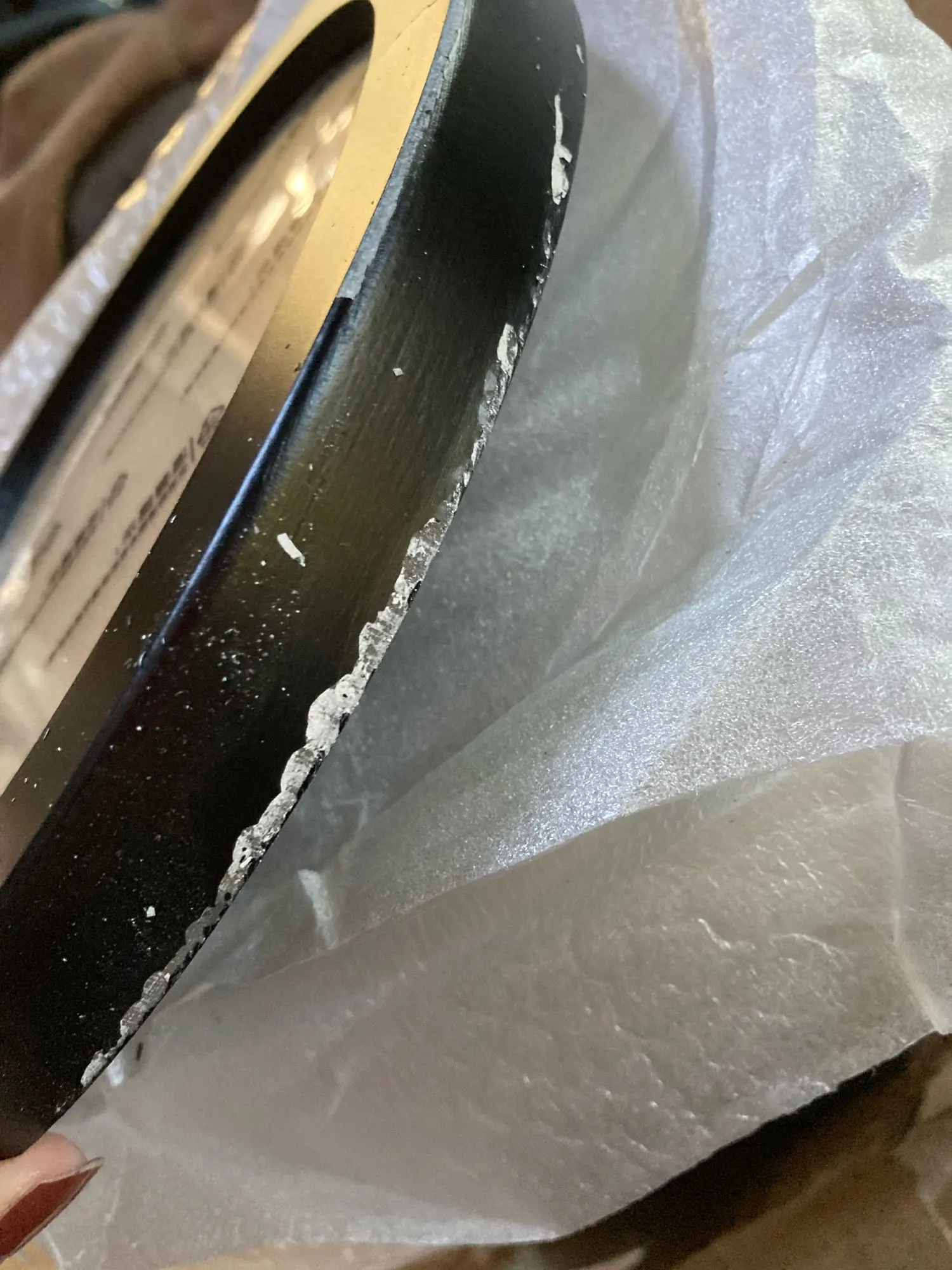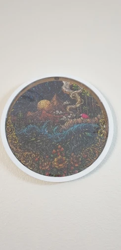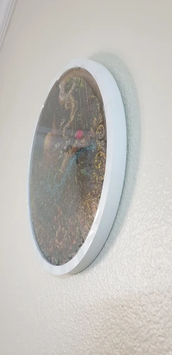 Я получил раму с отличной упаковкой, и она состоит из 3 частей: 1-деревянный наружный каркас, в котором находится полость внутри 2-круглый кусок дерева, на котором находится изображение, и есть 4 металлических зажима для фиксации На внешней раме Есть металлический элемент, который вы можете повесить на винт, который подвешен к стене, 3-тонкое пластиковое покрытие для покрытия и защиты изображения. Проблема с этой рамкой-это передняя крышка, потому что ее размер точно такой же, как внутреннее пространство деревянной рамы! Он должен быть немного больше, чтобы его можно было вставить в полость деревянной рамы и таким образом зафиксировать, в противном случае он будет легко падать. В общем, если вы собираетесь заплатить такую высокую цену за эту шину, я не рекомендую ее