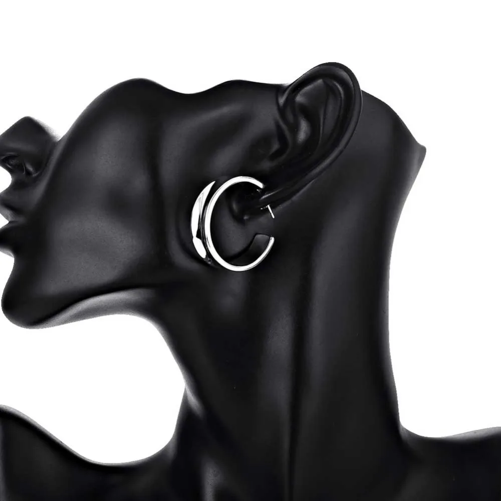 Женские серьги-кольца из серебра 925 пробы, с гладкой поверхностью