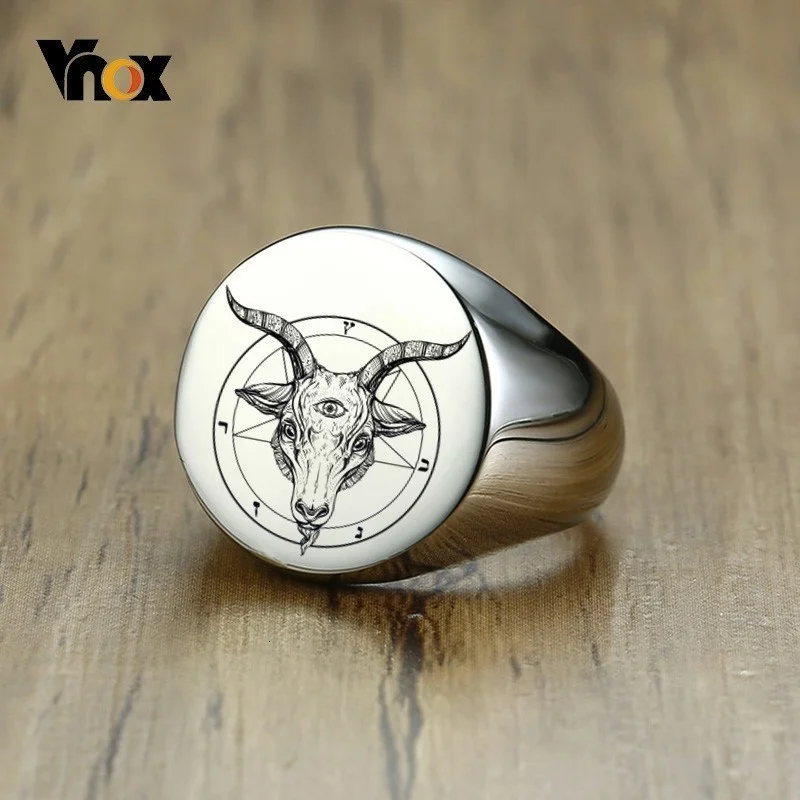Vnox дьявол козья голова на заказ Гравировка Мужская Печать кольцо из нержавеющей стали Рок Круглый топ перстень кольцо