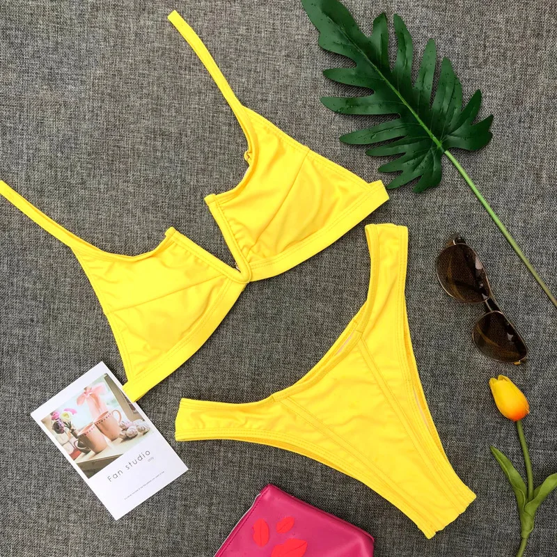 Соблазнительный однотонный Желтый комплект бикини 2022, женский бюс...