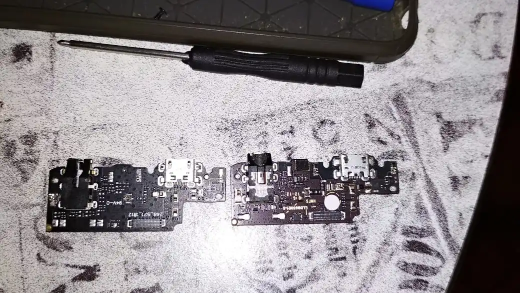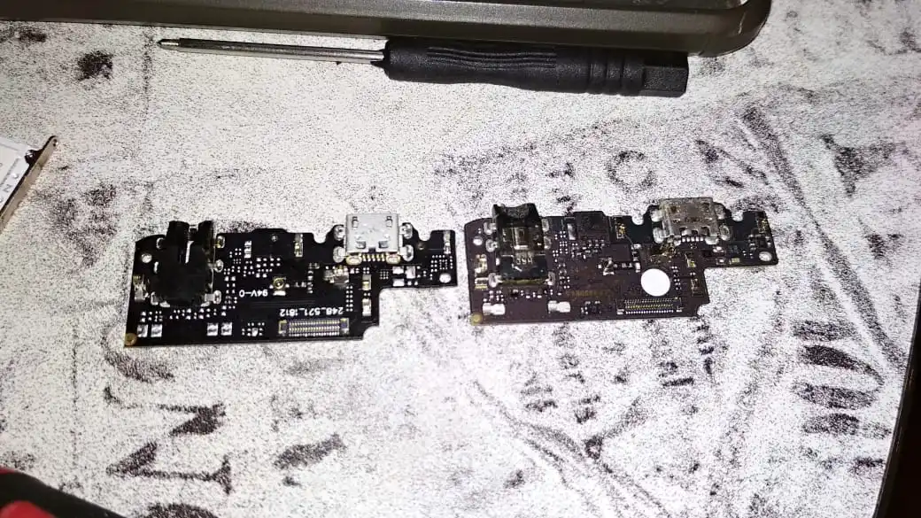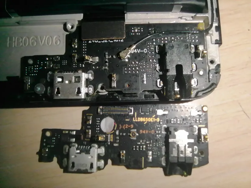плата отличается от родной, видно меньше элементов. но работает, заряд быстрый есть. гарнитура почему-то иногда фонит и хрипит, видимо плохие контакты или отсутствие элементов сказывается, на фото справа оригинал, слева данная плата продавца. хз вроде работает, но вот с наушниками косяк, хотя блютуз пользуюсь в основном.