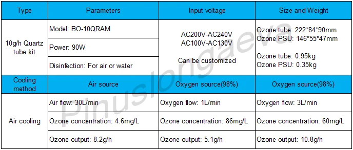 Комплект озонового генератора Pinuslongaeva, 10 Гцч 10 грамм, кварц...