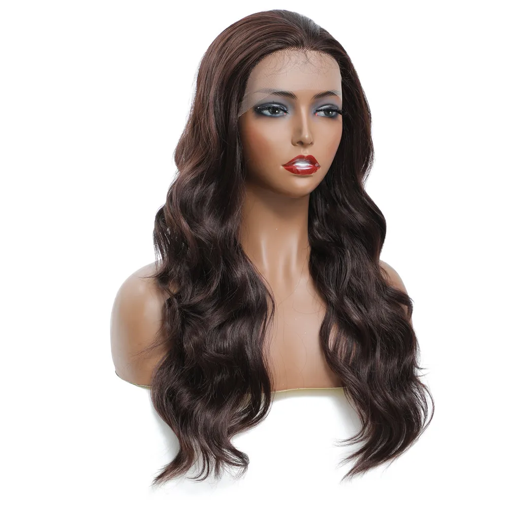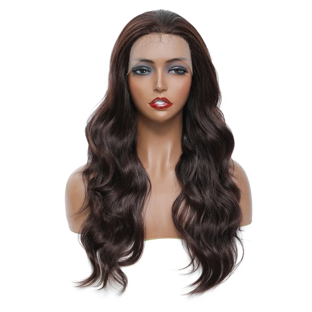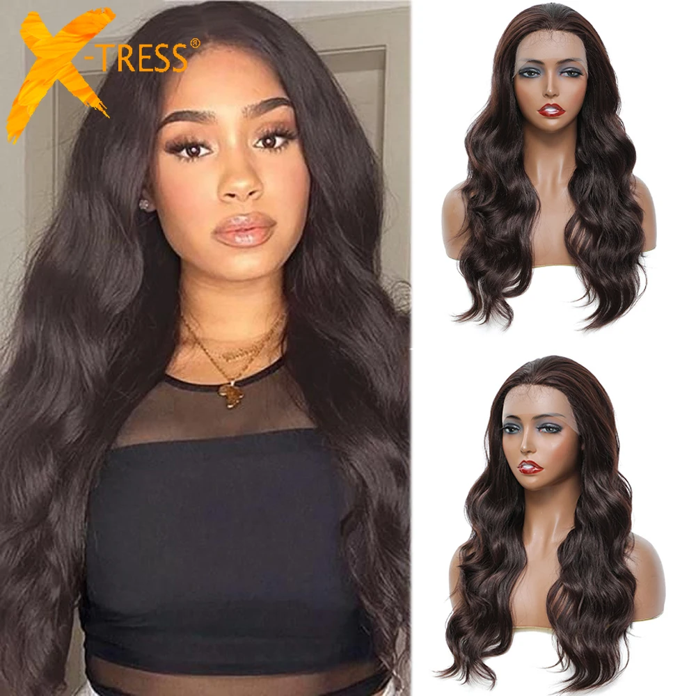 Длинные волнистые синтетические волосы, парики для черных женщин, X-TRESS, натуральный коричневый цвет, африканская прическа, кружевной парик для повседневной носки