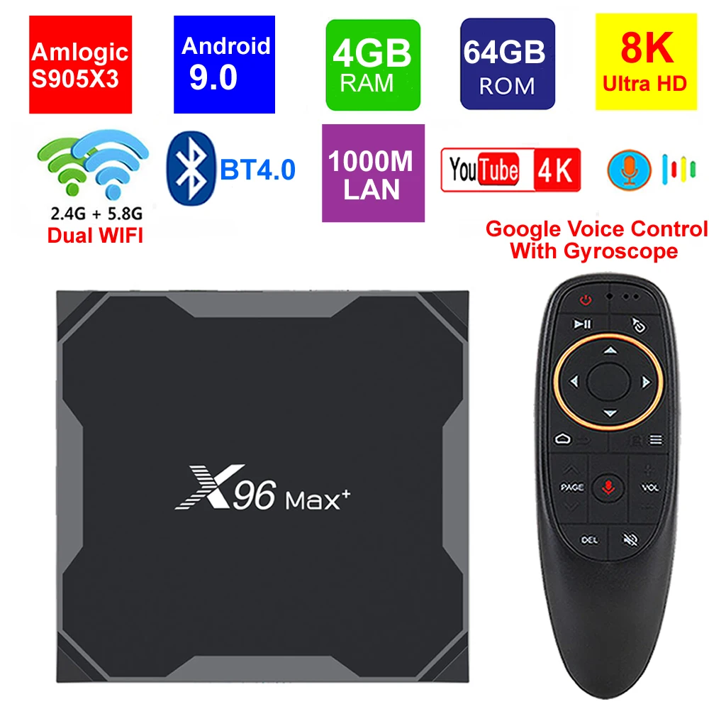 Оригинальная ТВ-приставка X96 Max Plus, 8K, Android 9,0, четырехъядерный Amlogic S905X3, 4 ГБ, 64 ГБ, стандартная двухканальная ТВ-приставка с поддержкой Bluetooth 1000, Мбитс, Lan 8K, HDR