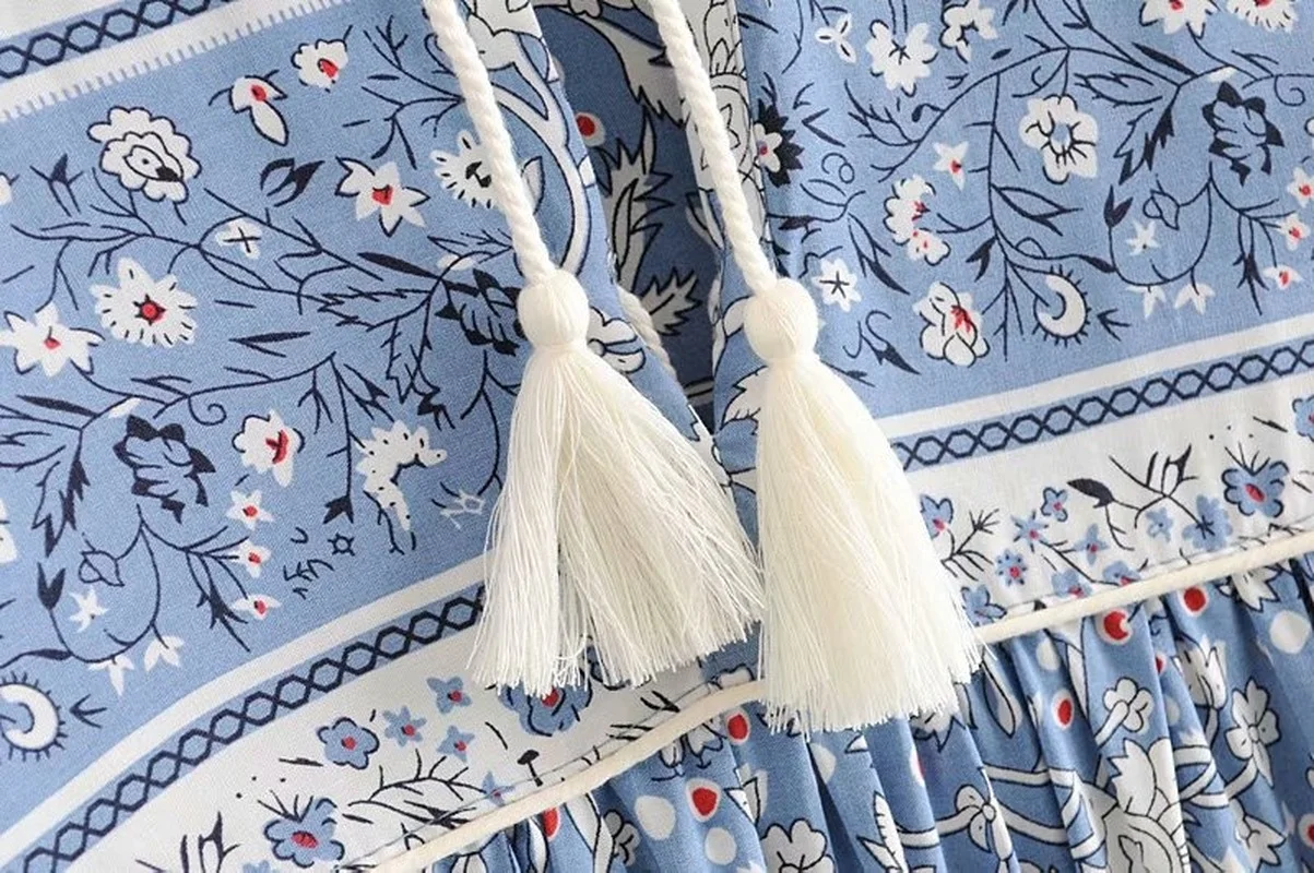 Винтажное шикарное Женское Платье макси с длинным рукавом и галстуком-бабочкой, Пляжное богемное платье с цветочным принтом и фарфоровым принтом, хлопковое платье бохо, Халат
