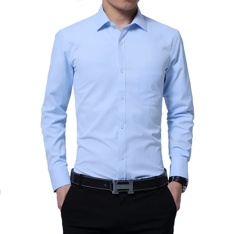 Мужская рубашка с длинным рукавом, однотонная белая деловая Повседневная деловая рубашка, деловая рубашка, приталенная Мужская рубашка, весна 2019