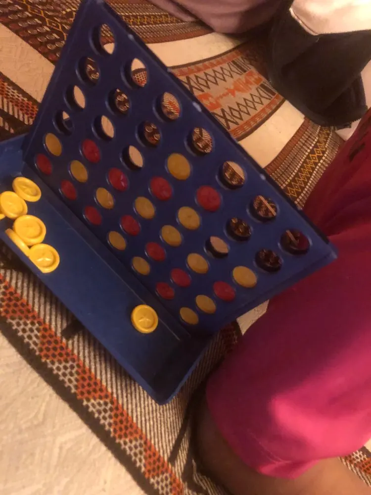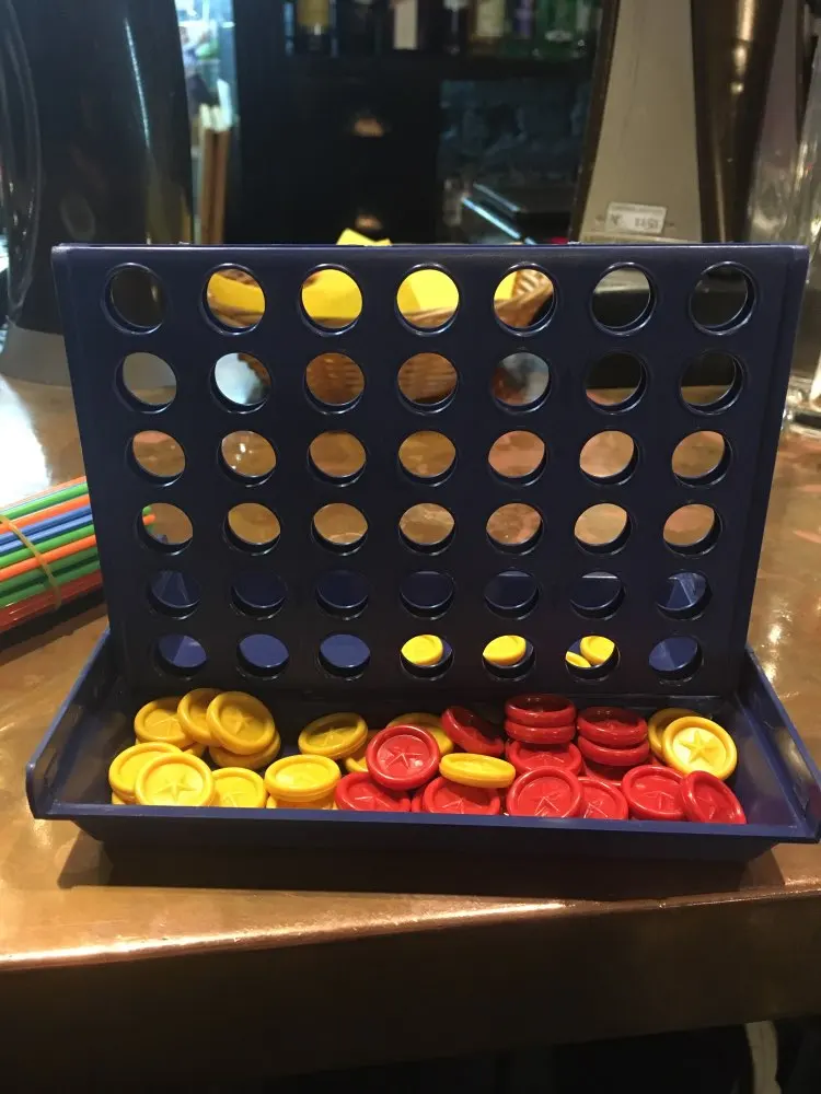 Поочереди кидаете шайбочку, выигрывает тот кто быстрее соберётся повдоль, поперёк,или по диагонали полоску из 4х шайб своего цвета, по принципу игра похожа на крестики нолики,