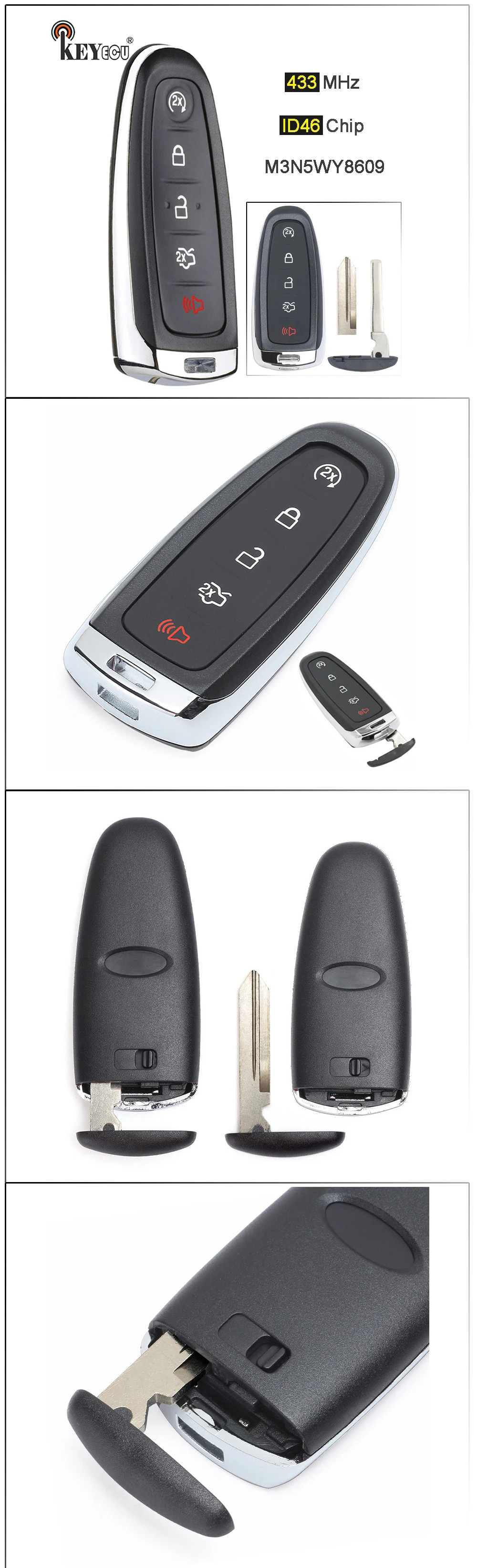 KEYECU 433 МГц PCF7953 BT4T-15K601-JC Smart 4 + 1 5 кнопок дистанционный ключ-брелок от машины для Ford Edge Escape Explorer Taurus Flex Focus