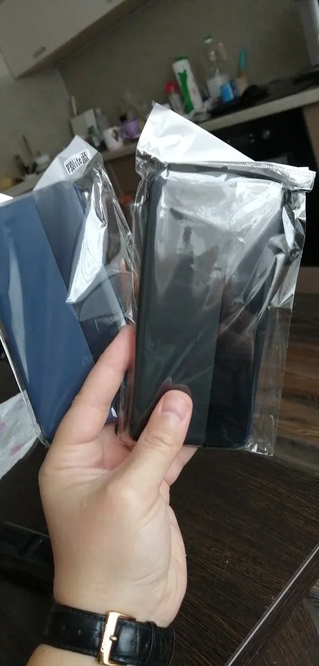 Очень хлипкий чехол, ещё не пользовалась, а уже пришел надорванный. Кожи тут и близко нет, клеёнка и пластик, красная цена 100 руб, не больше. С продавцом не общалась, отправил относительно быстро. Засунула телефон в чехол, достать теперь не могу, чтобы сфотографировать, до такой степени плотно сидит. И потёртость видно на передней крышке.