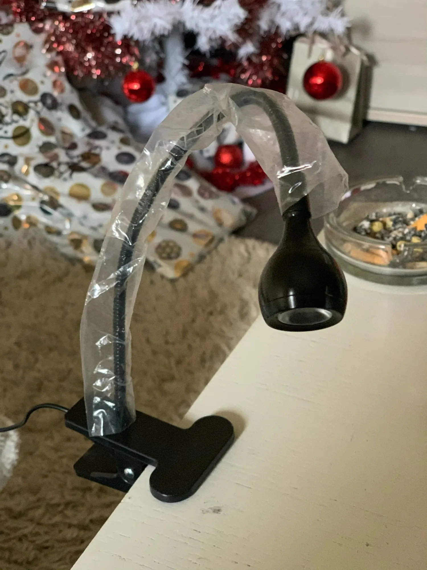 Товар прибыл очень быстро. Изделие было очень хорошо упаковано. Работает хорошо. У нее есть зажим, чтобы повесить его на стол, и есть переключатель. Продавец очень хороший. Я рекомендую этого продавца.