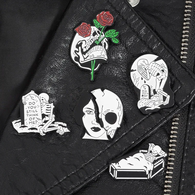 2019 Женская эмалированная темная булавка с изображением лица черепа розы мёртвые влюбленные гроб значок со скелетом брошь рубашка сумка Панк ювелирные изделия подарок для детей подвеска