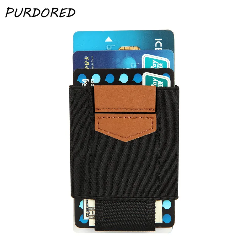 Эластичная кредитница PURDORED 1 шт., маленький мужской держатель для визиток, удостоверения личности, дорожный Органайзер, минималистичный тонкий кошелек