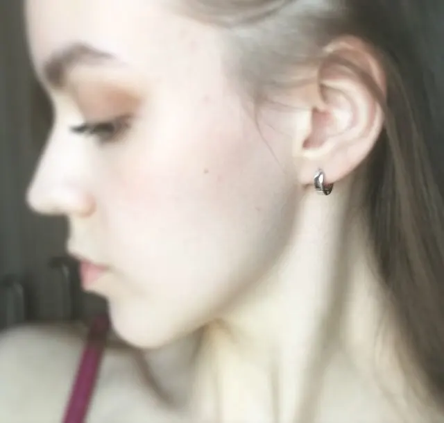 Серьги мне очень нравятся. Хорошая застежка, гладкие, ни за что не цепляются. За месяц ежедневной носки, даже мылась с ними, не потускнели, не облезли. Сбоку написана проба – 925. Заказала еще другого вида, со стразами.