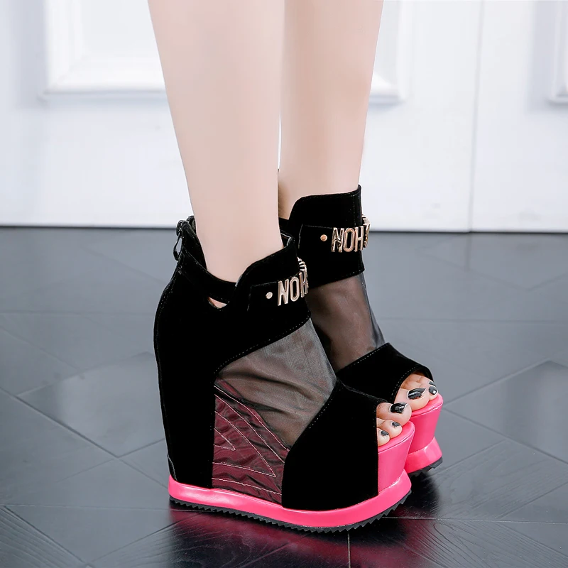2019 новые флоковые Ankl сапоги обувь Для женщин летние пикантные открытые на высокой танкетке с широко открытым носком тонкие туфли толстая подошва короткие ботинки на танкетке