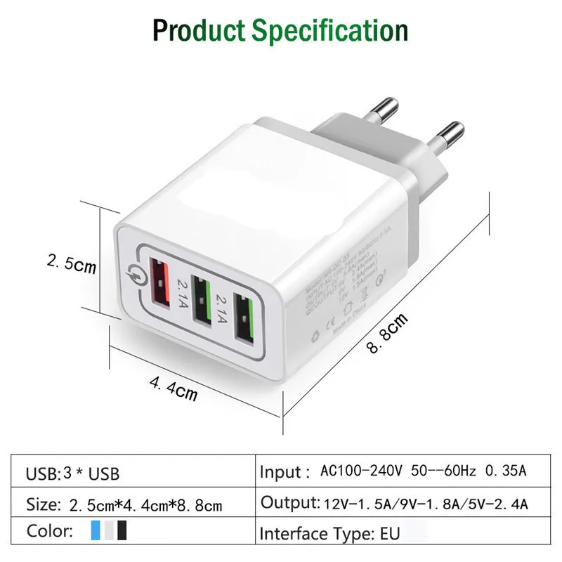 Быстрое зарядное устройство USB 5 В, 3 А, быстрая зарядка QC 3,0, а...