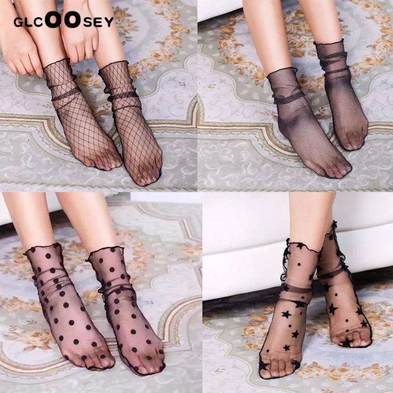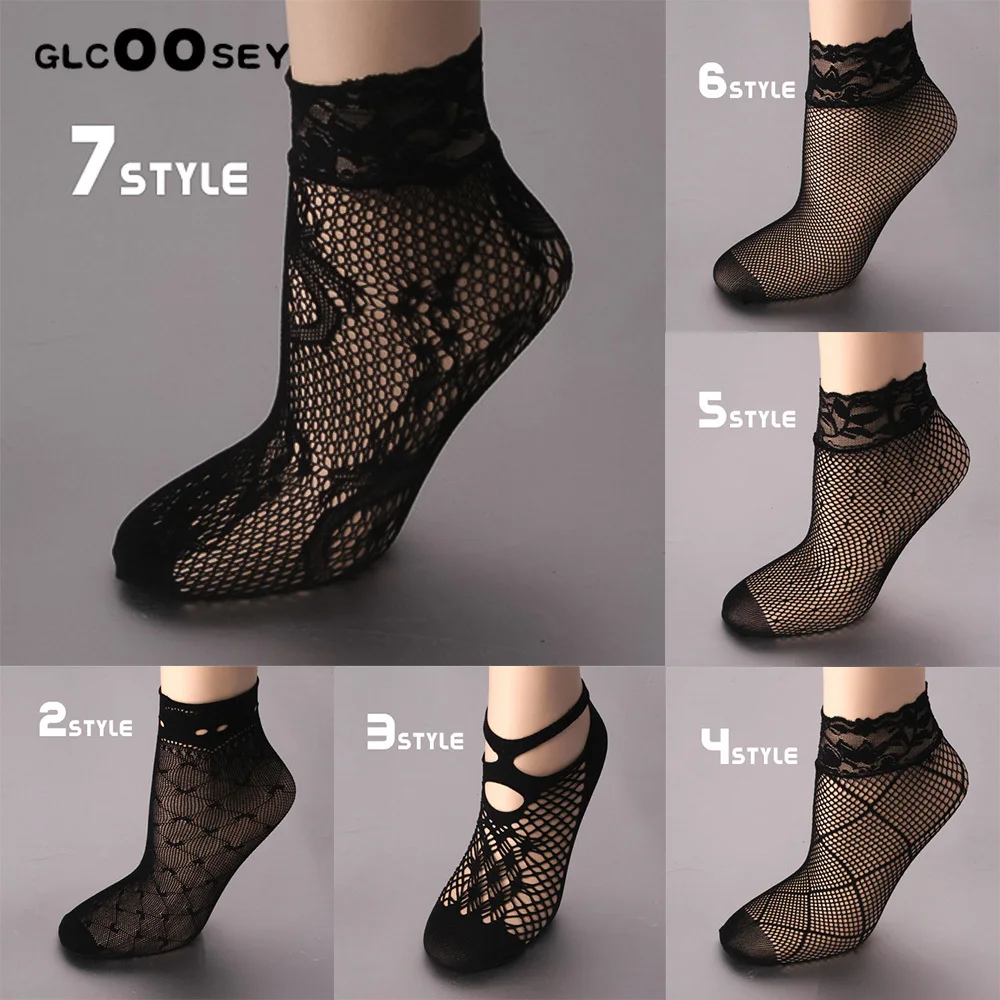 Сексуальные кружевные сетчатые носки в сеточку, прозрачные тянущиеся эластичные забавные носки по щиколотку, тонкие женские блестящие шелковые носки из сетчатой пряжи
