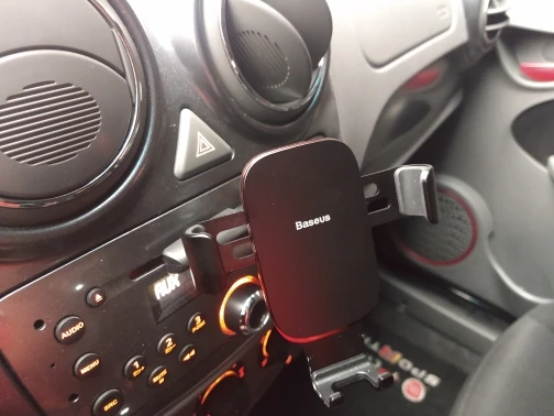 Не очень устойчиво держится в слоте под CD, в вертикальной плоскости при движении на неровности болтается. Доставка быстрая.