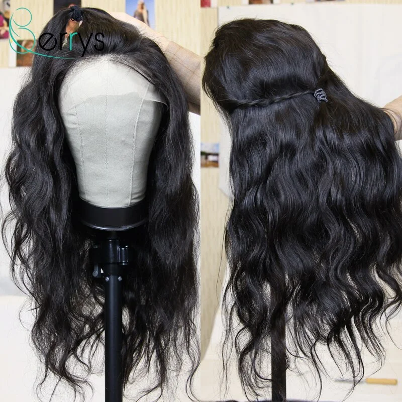 Berryshair малазийские 100% натуральные волосы 13x6, парики из человеческих волос с кружевом спереди, волнистый парик, предварительно выщипанные прозрачные кружева, естественные волосы