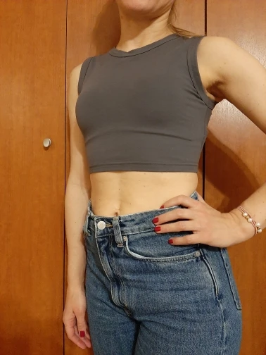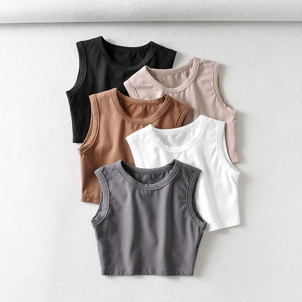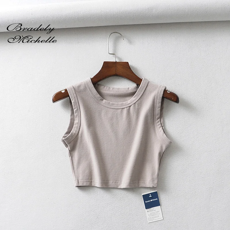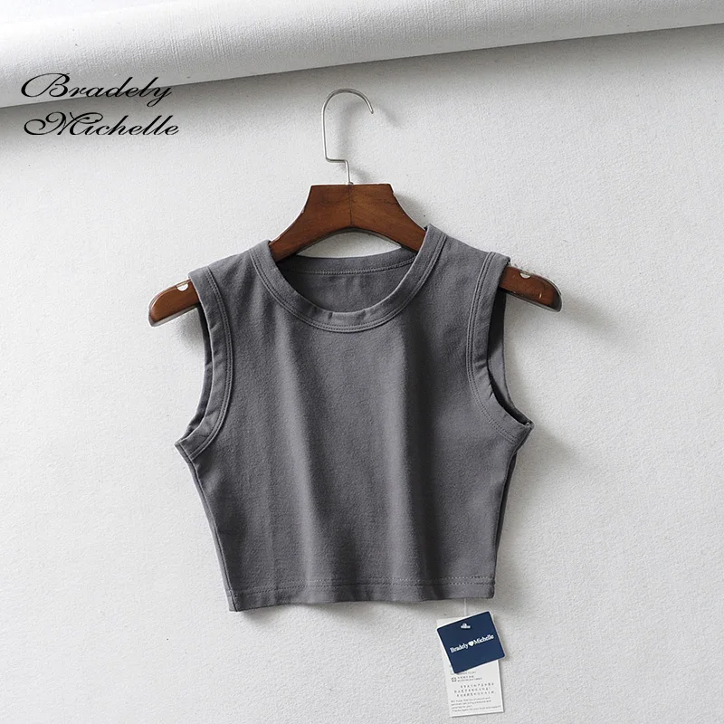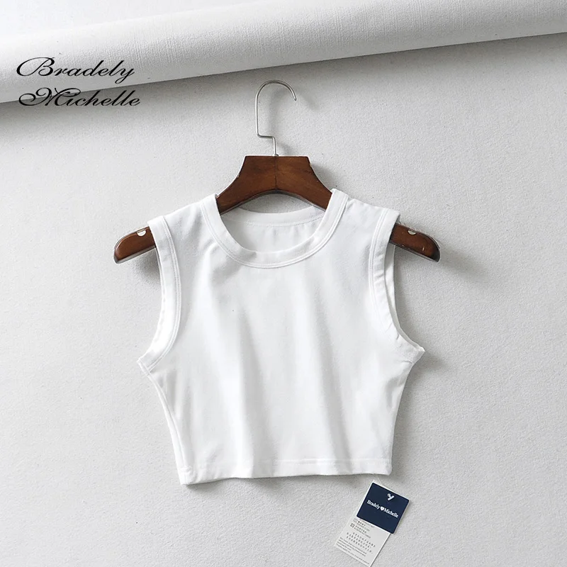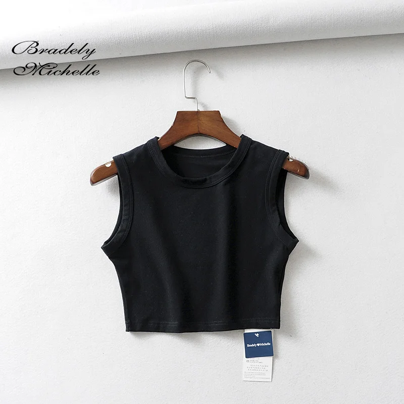 Женский короткий топ из хлопка, без рукавов, с круглым вырезом