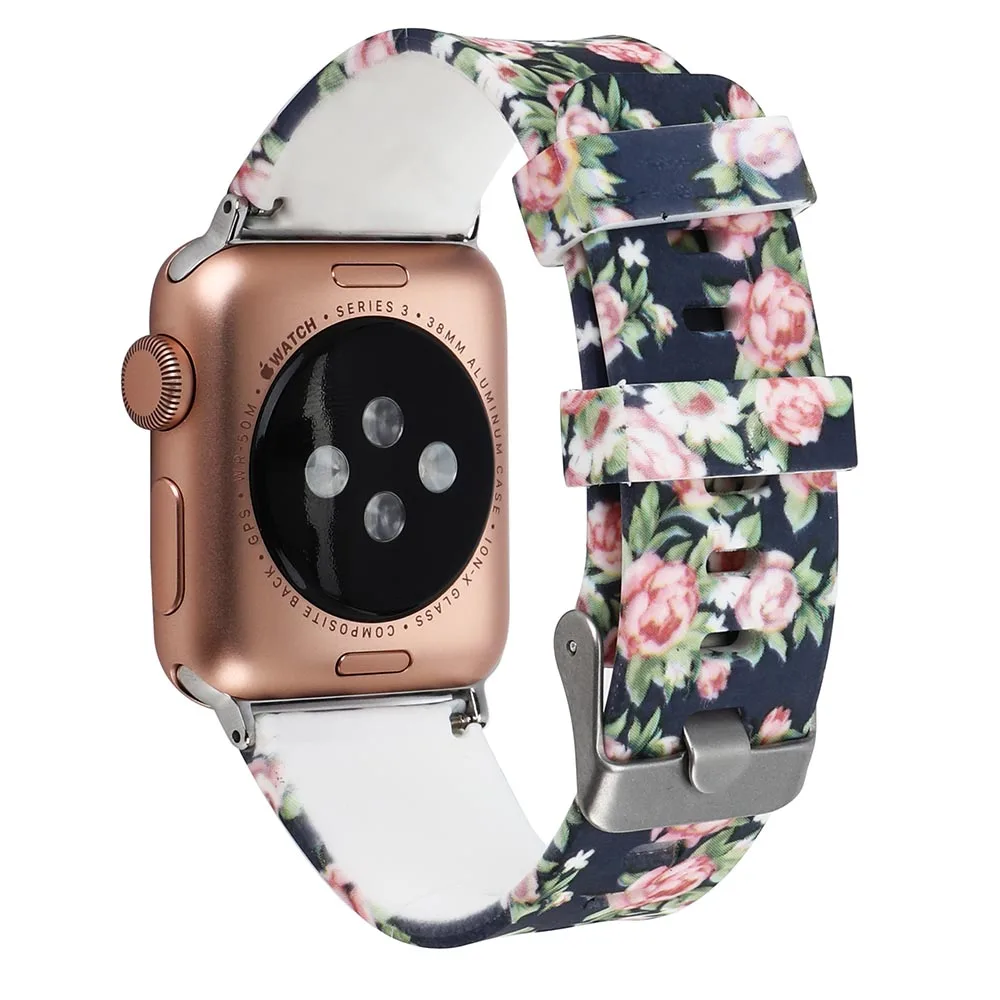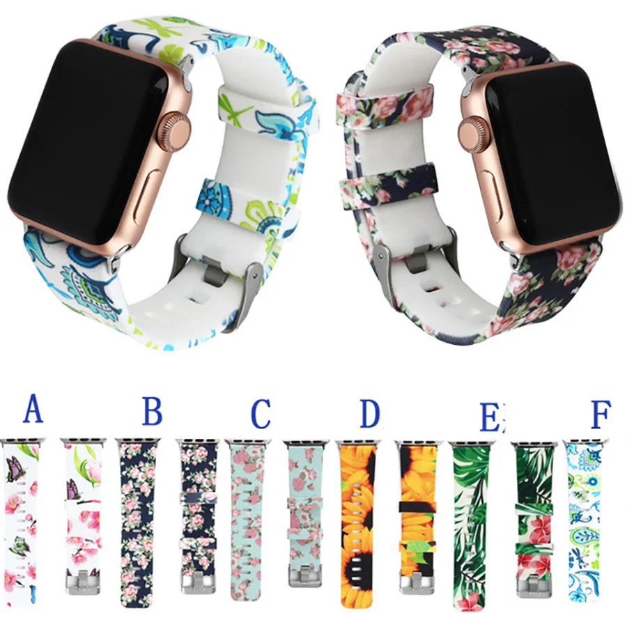 Ремешок силиконовый для Apple watch Series 6 5 4 3 2 1 SE, браслет с цветочным принтом для iWatch Series 4 3 2 38 мм 42 мм, 40 мм 44 мм