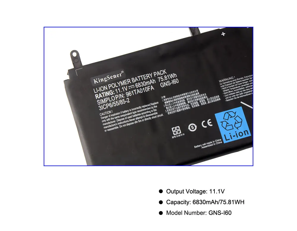 Аккумулятор KingSener для ноутбука GIGABYTE P35K, P37X, P57X, P35G, P35N, P35W, P35X, P37W, P57W, 961TA010FA, 31CP65585-2,--2, новый, с