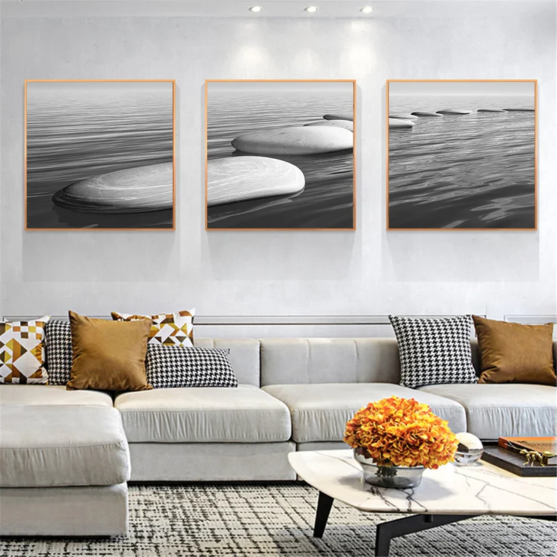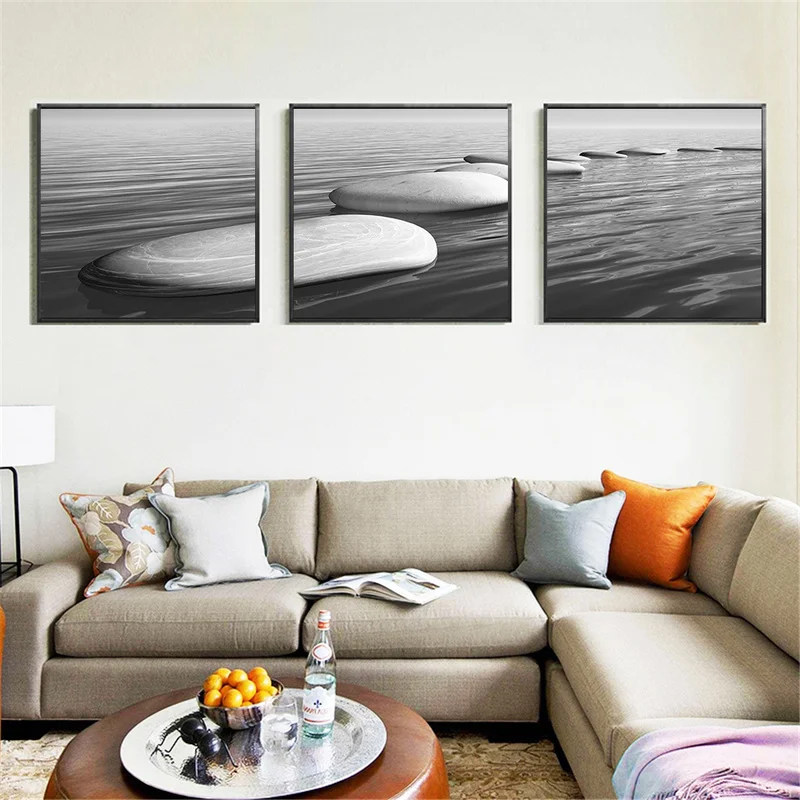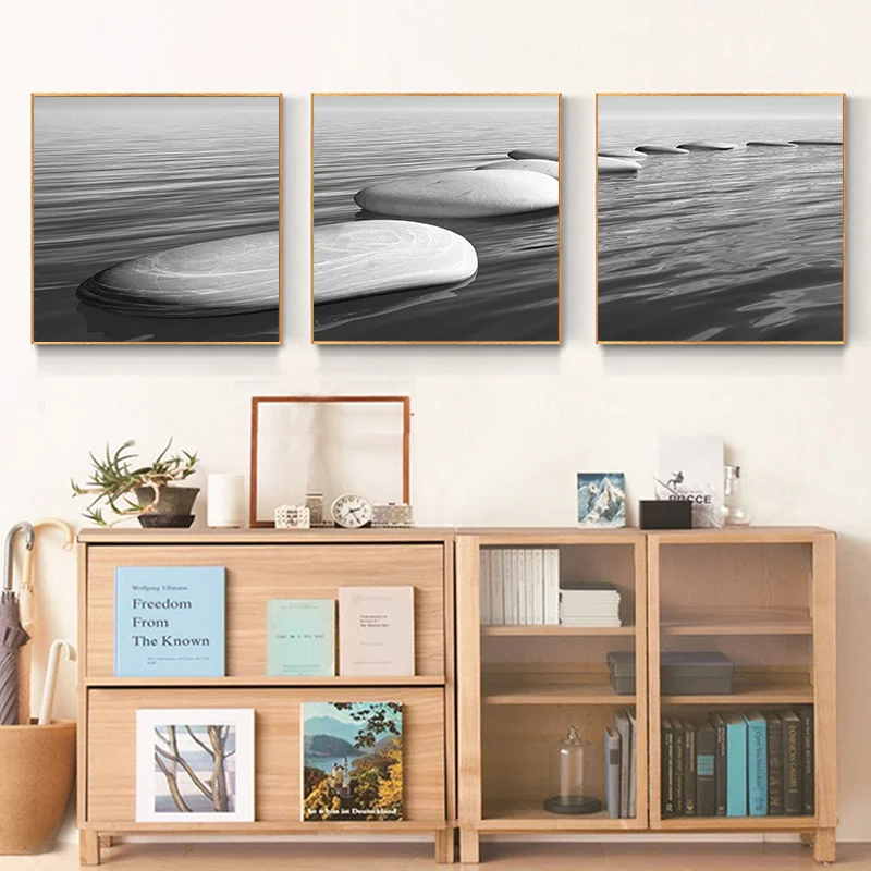Постеры для украшения дома в скандинавском стиле, 3 шт., холст, морской камень, дзен, живопись, черные и белые настенные картины, украшение для дома