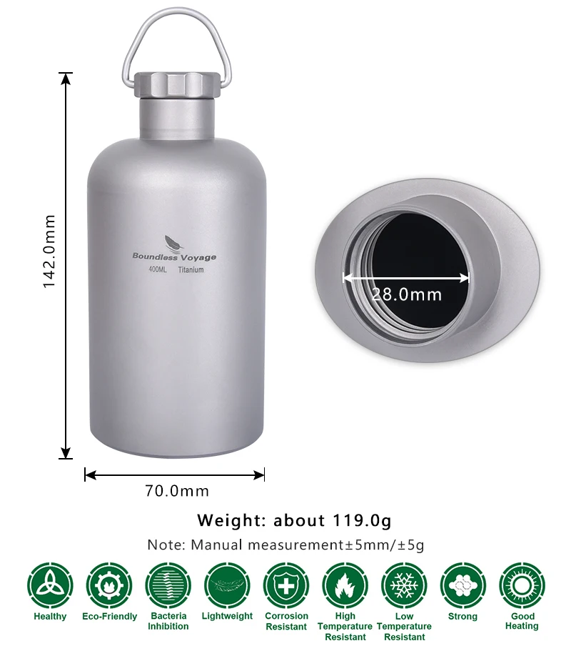 Бутылка спортивная титановая с титановой крышкой кружки для чая кофе 400 мл для отдыха на открытом воздухе, кемпинга, велоспорта, пешего туризма, пикника