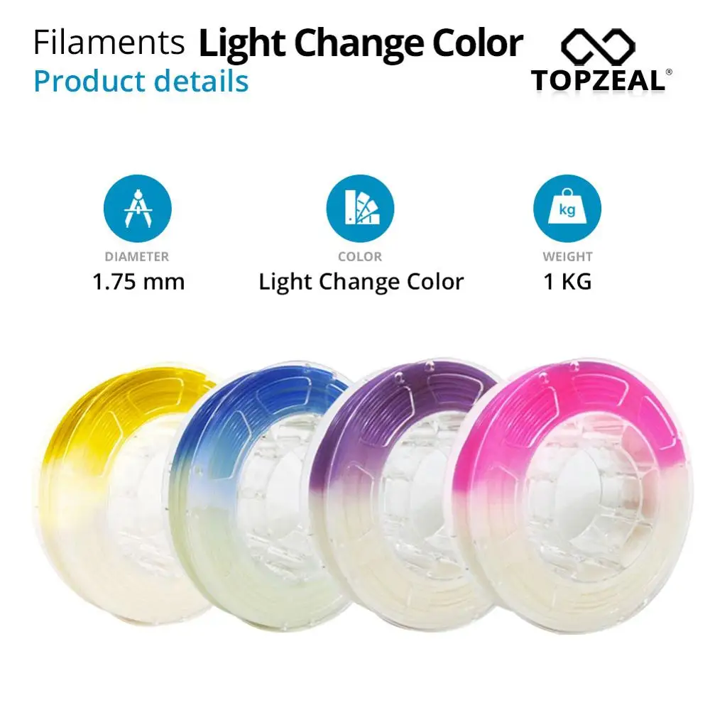 Нить для 3D-принтера TOPZEAL PLA Light Change Color, точность размеров +-0,05 мм, катушка PLA 1 кг, PLA 1,75 мм