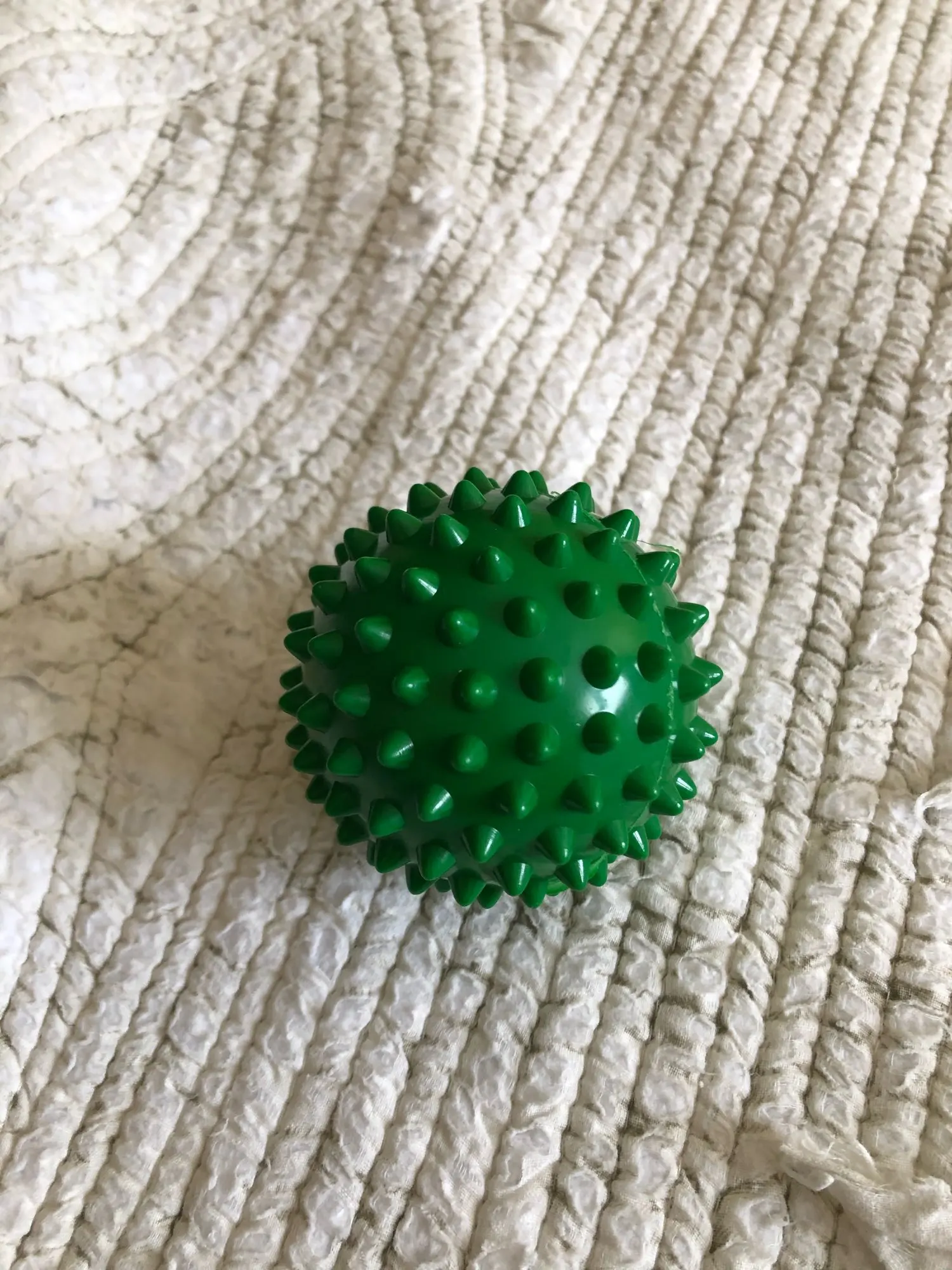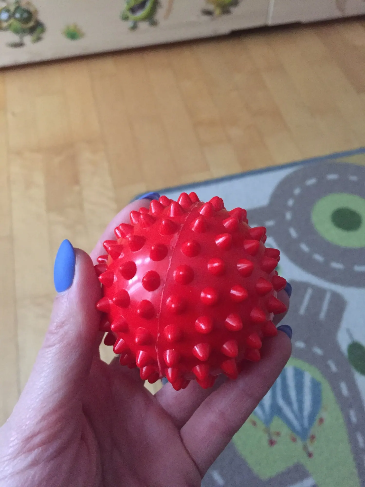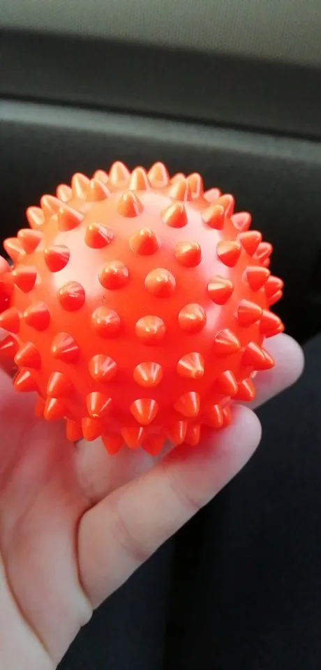 Отличный мячик, твердый, шипы 4 мм высотой, прекрасно проминает тело. Заказываю здесь уже 2й раз, первый мяч подарила бабушке, теперь она тоже занимается! Доставка 1,5 месяца, все пришло вцелости. Благодарю и рекомендую магазин и товар!