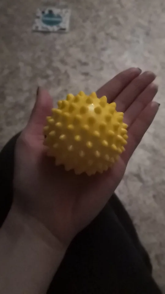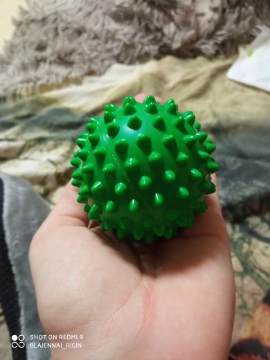 Отличный массажный шар, твердый, размер удобный, взял специально две штуки. Описанию на сайте соответствует. Продавцу спасибо и процветания.