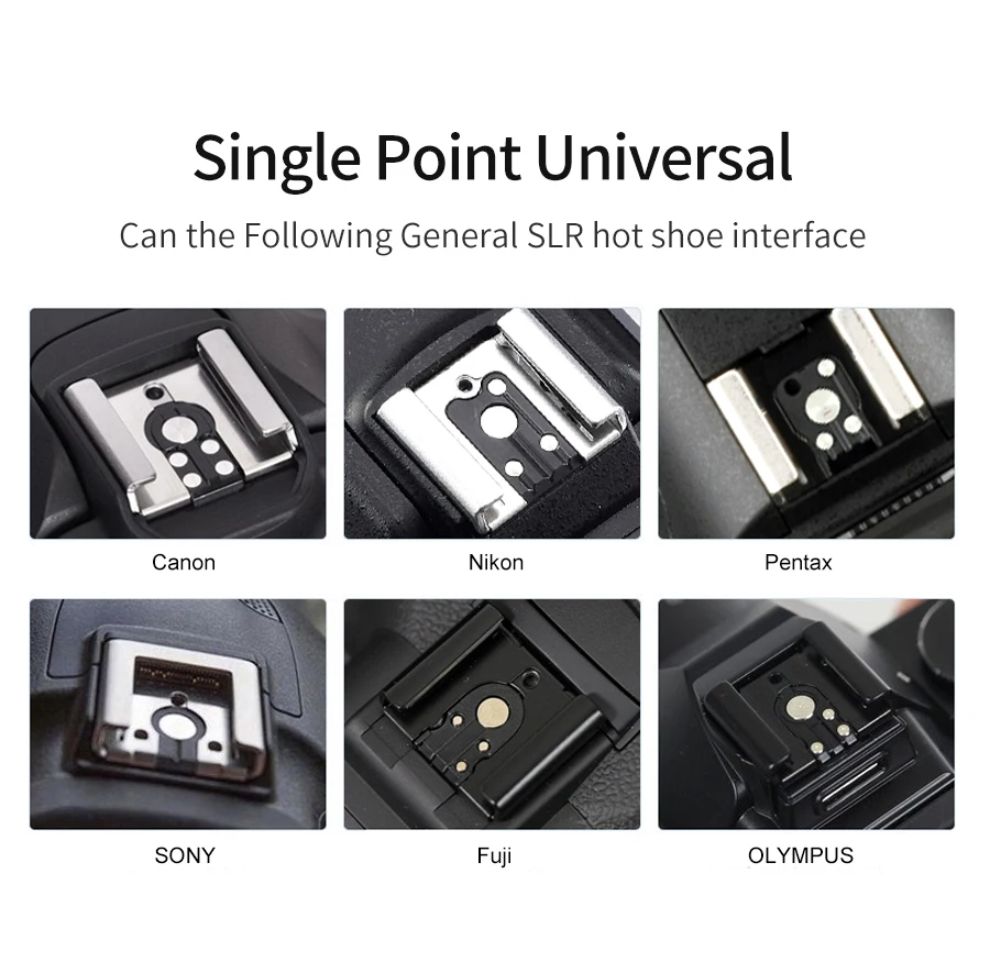 Он совместим с камерами большинства брендов, такими как Canon Nikon Pentax Olympus Fujifilm Panasonic и другими цифровыми камерами со стандартным горячим башмаком. Он оснащен оптической передачей и беспроводной передачей 2,4G, обеспечивает равномерное освещение и стабильную выходную мощность, что дает вам более выдающийся светильник.