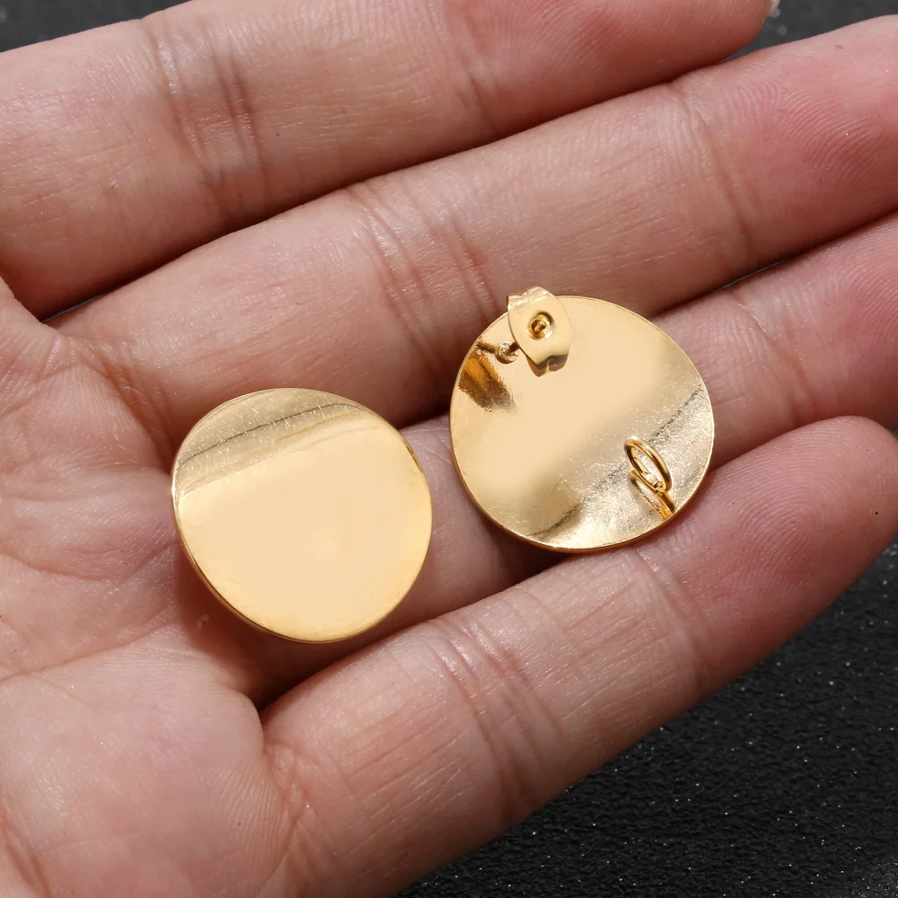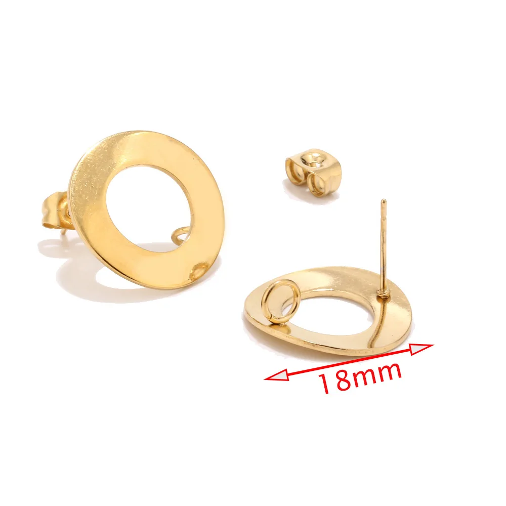 40 шт 18 мм золотые пустотелые круглые дисковые ушные столбы 18K Золото Тон нержавеющая сталь геометрические дисковые шпильки Серьги компоненты гипоаллергенные