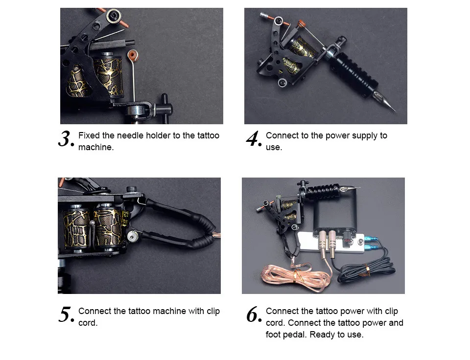 9. Включите питание, шаг ножной переключатель, теперь татуировочная машина работает