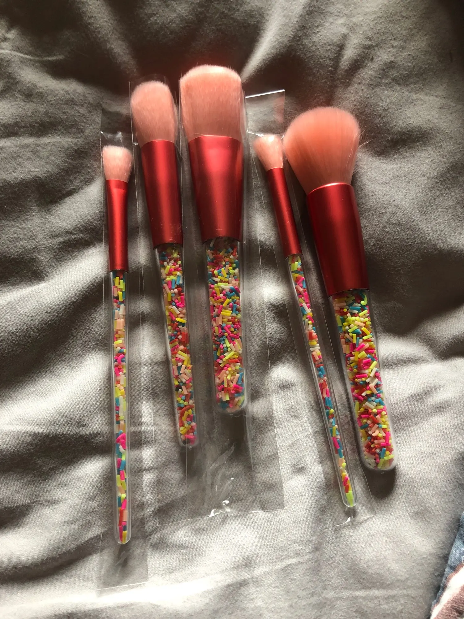 Новинка, 5 шт., Леденцы На Палочке, конфеты, единорог, Кристальные кисти для макияжа, набор, красочные, симпатичные, кисть для смешивания тональной основы, макияжные инструменты