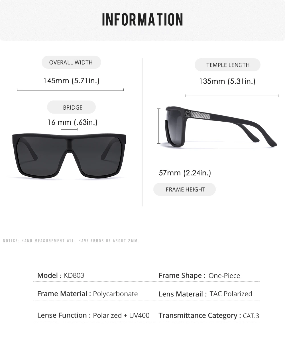 Мужские и женские цельные солнцезащитные очки KDEAM, поляризационные солнцезащитные очки с упругая краска поверхностью, долговечные очки Cat.3