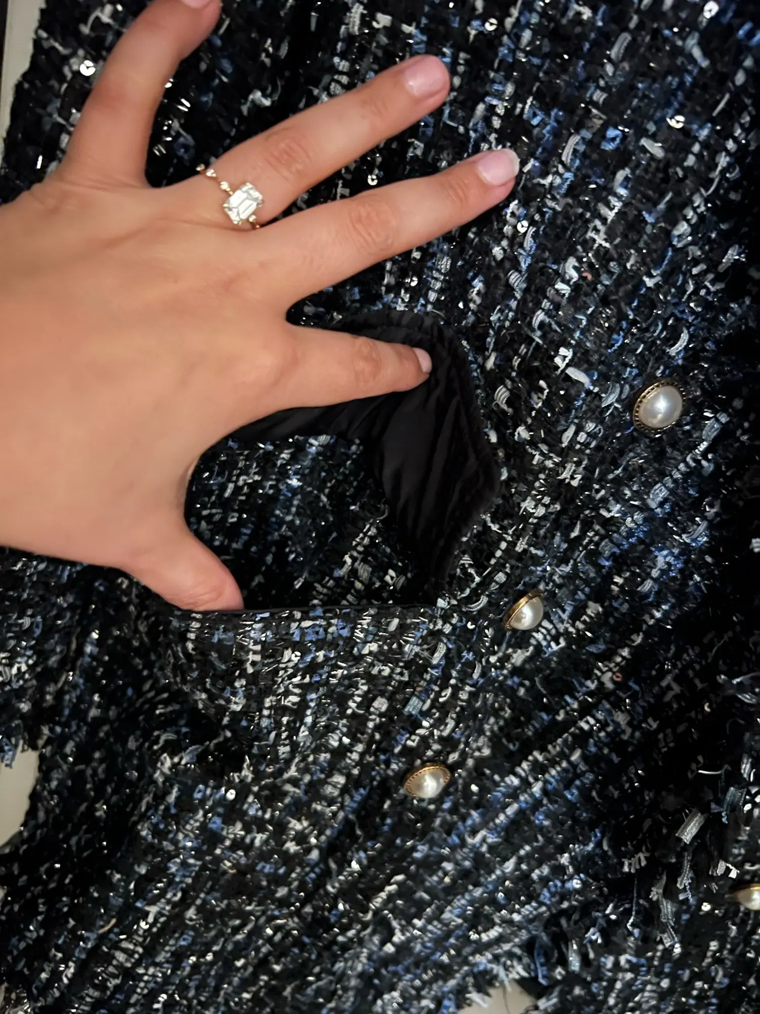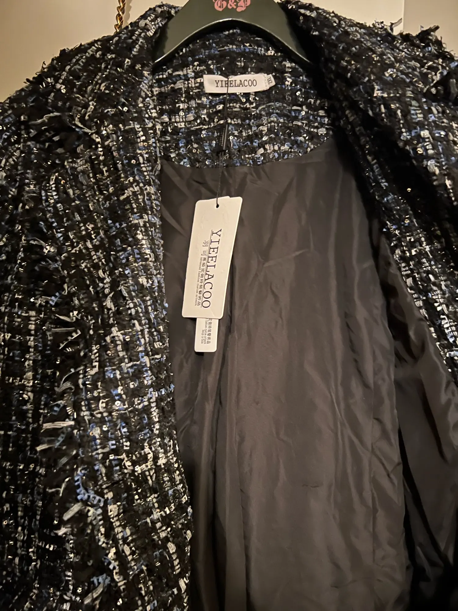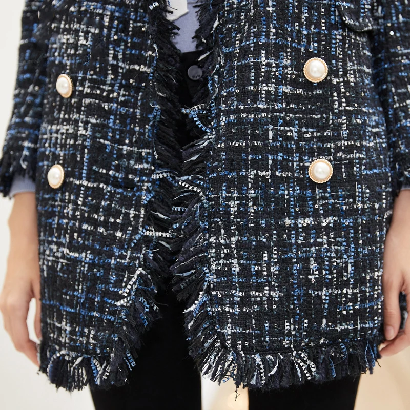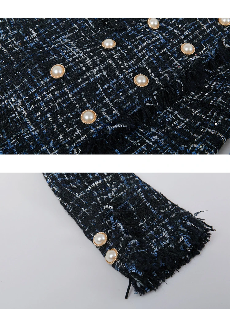 Темно-синее твидовое пальто средней длины цельный женский жакет на осеньзиму новый небольшой аромат Дамская куртка пальто