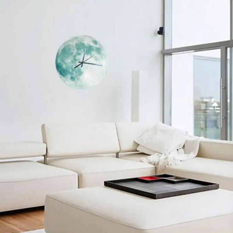 3D светящиеся лунные настенные часы, водонепроницаемые флуоресцентн...