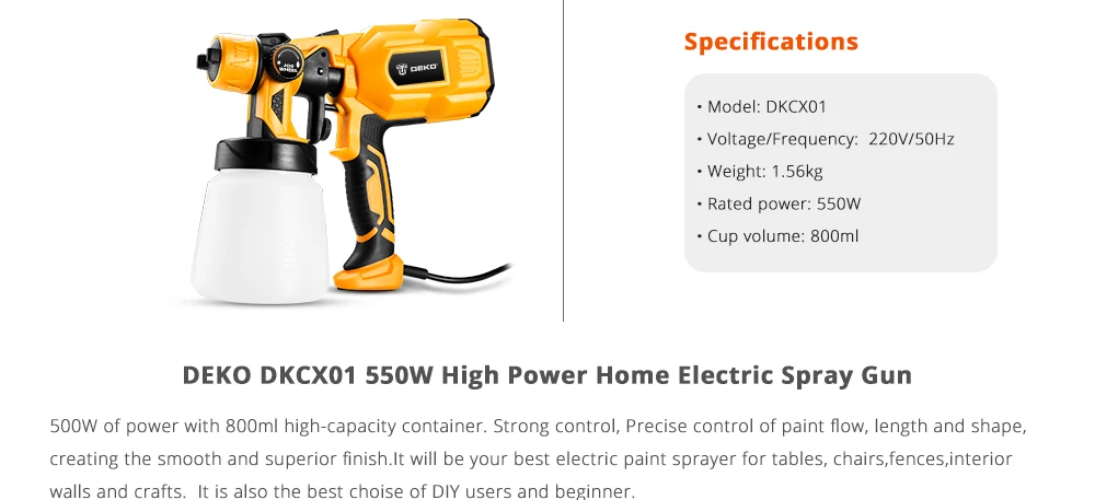 Пистолет-распылитель DEKO DKSG55K1, домашний электрический опрыскиватель высокой мощности 550 Вт, 220 В, 3 насадки для легкого распыления и очистки, идеально подходит для начинающих