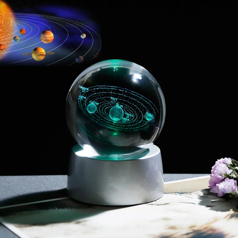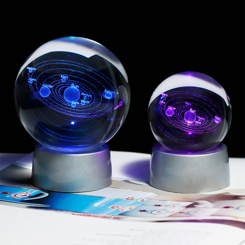 3D Хрустальная планета, шар, подарок для астрофилового стекла, шар солнечной системы с заряжаемым светодиодный основанием, подарок для детей на день рождения