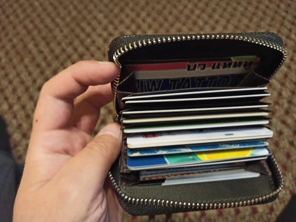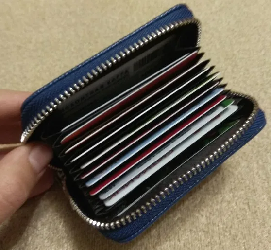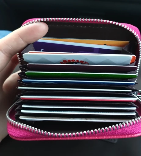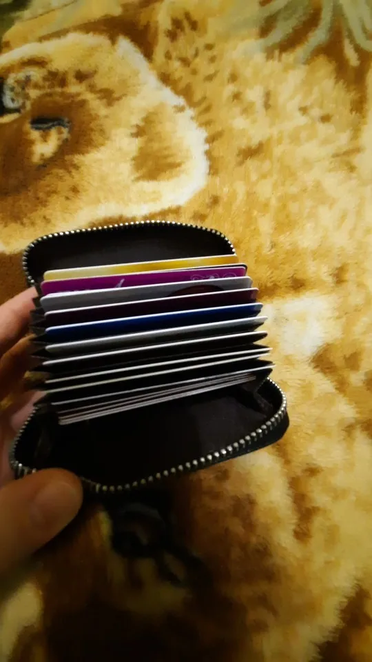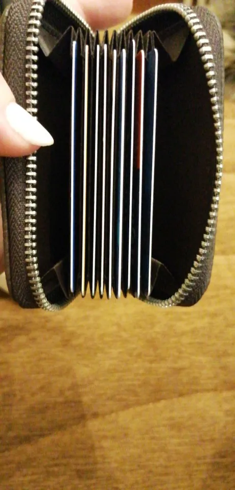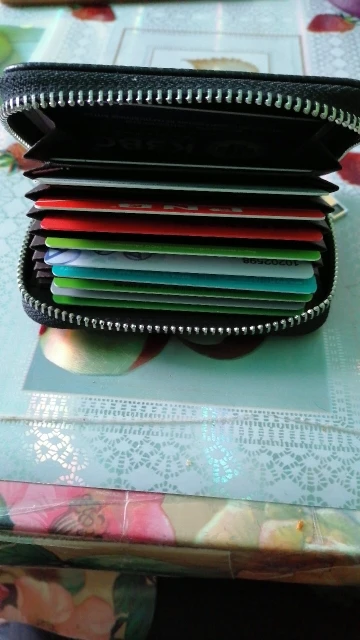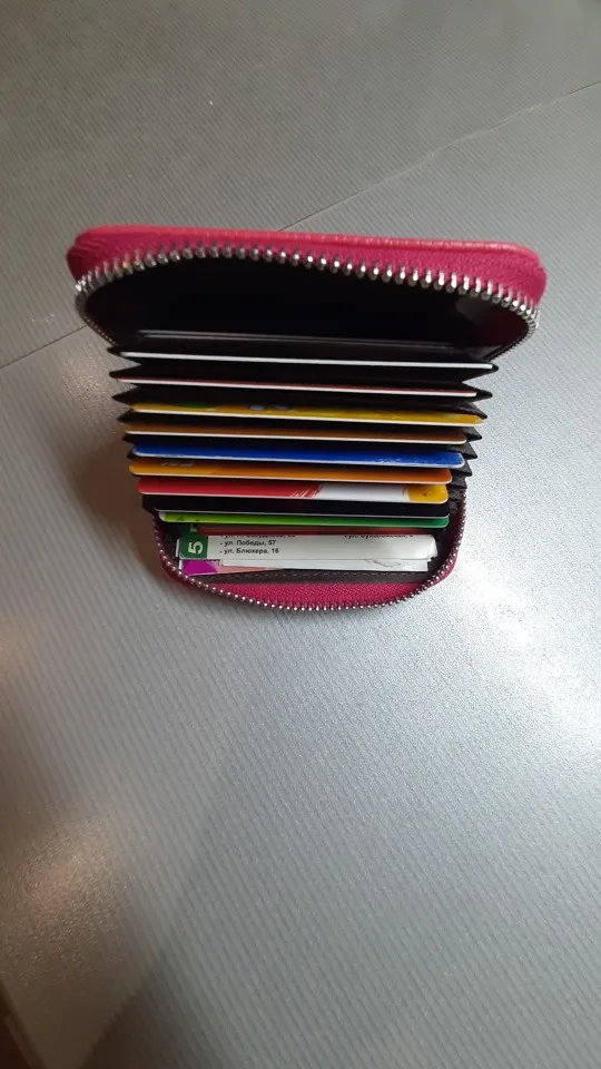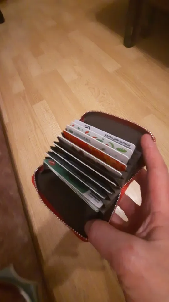 Отличный держатель! Всё вместилось и банковские карты, и карты аптек, магазинов, заправок, визитки. Очень удобно доставать. Молния хорошо работает. К качеству изделия претензий нет. Все вместилось, осталось даже места для небольшого запаса. Но всё же хотелось бы больше отделений. Очень удобный держатель.