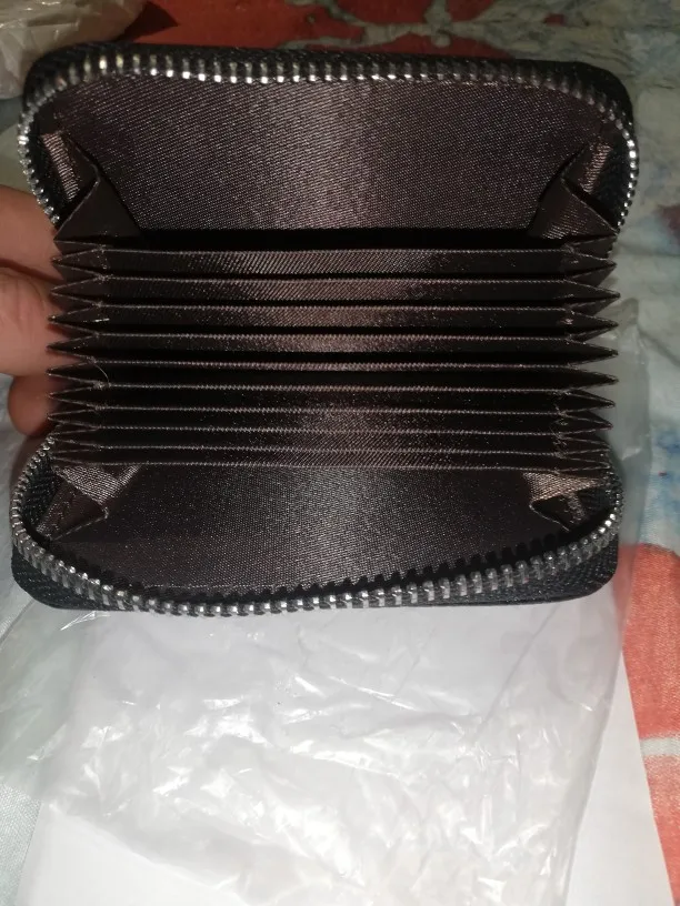 Посылка пришла быстро за 6 дней с Китая до Нижнего Новгорода. Трек отслеживался. Упакована в целофановый пакет с бумагой, далее в пакет с пупыркой. Качество хорошее, кожа приятная на ощупь. Молния металлическая, собачка тоже. Карманов много, убралось 28 карт, больше 30 думаю не влезет. Продавца рекомендую.