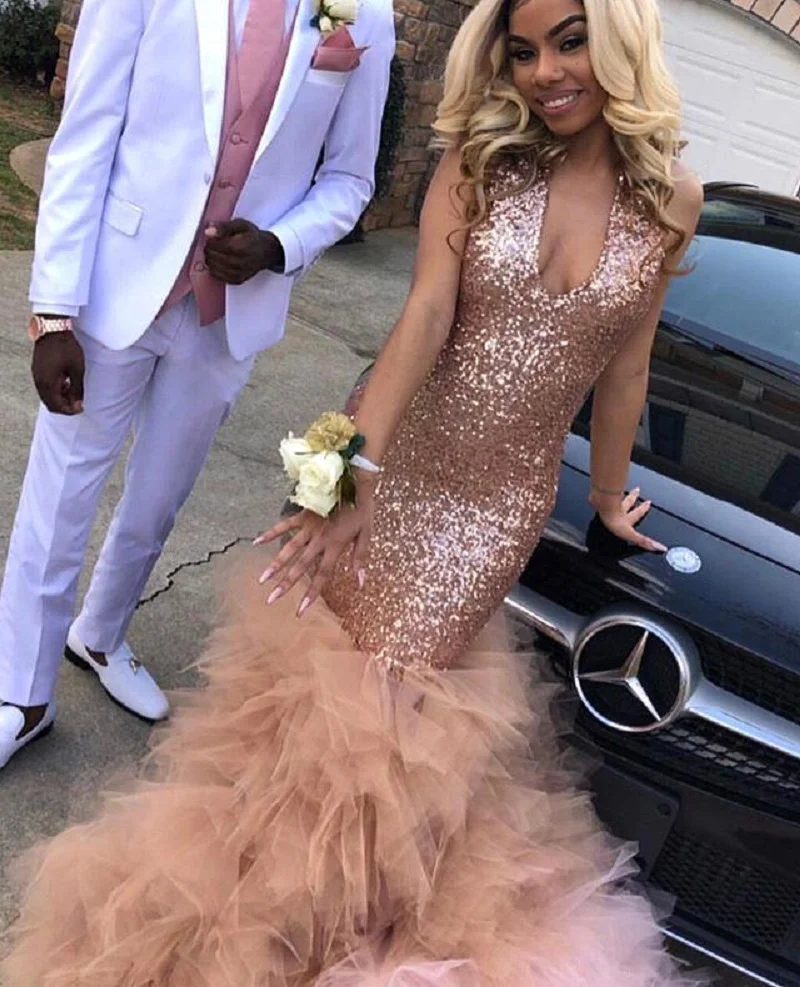 Vestido de gala, сексуальные черные платья Русалочки для девочек, розовые платья для выпускного вечера, 2020, расшитые блестками африканские Плиссированные Длинные вечерние платья с шлейфом, вечерние платья размера плюс, платье с блестками