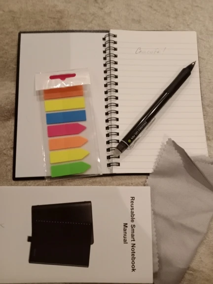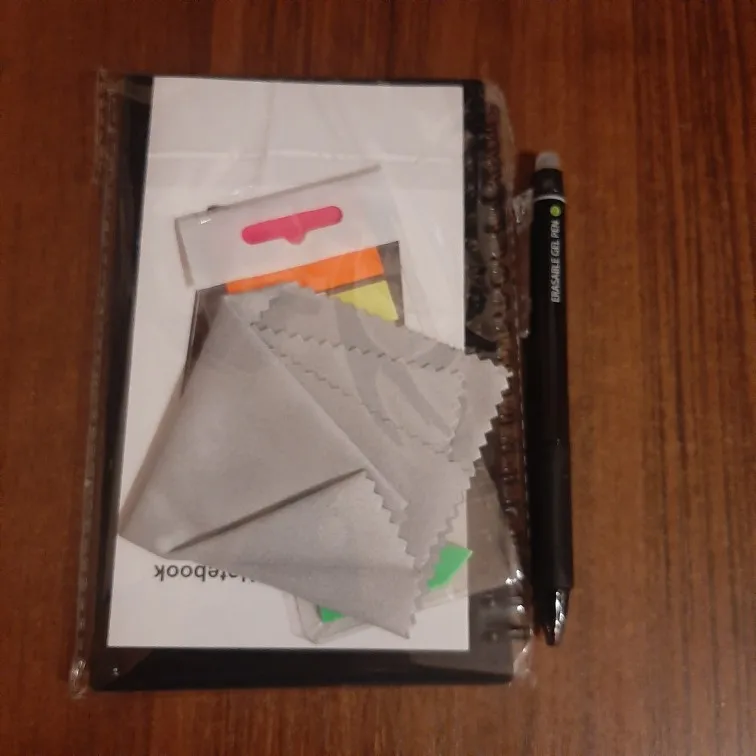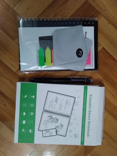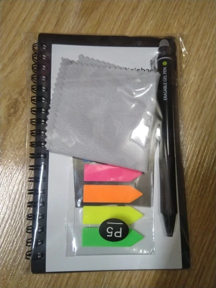 Отличная штука этот ваш многоразовый блокнот! Брала в подарок на 23 февраля! Блокнот в коробочке с инструкцией,а в комплекте тряпочка,стикеры и специальная ручка! Парню понравится! Правда мне показалось,что одной черной ручки будет мало и я заранее докупила набор таких же специальных цветных ручек,ну и ещё стержни к ним чтобы уж точно на дольше хватило!