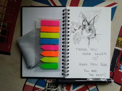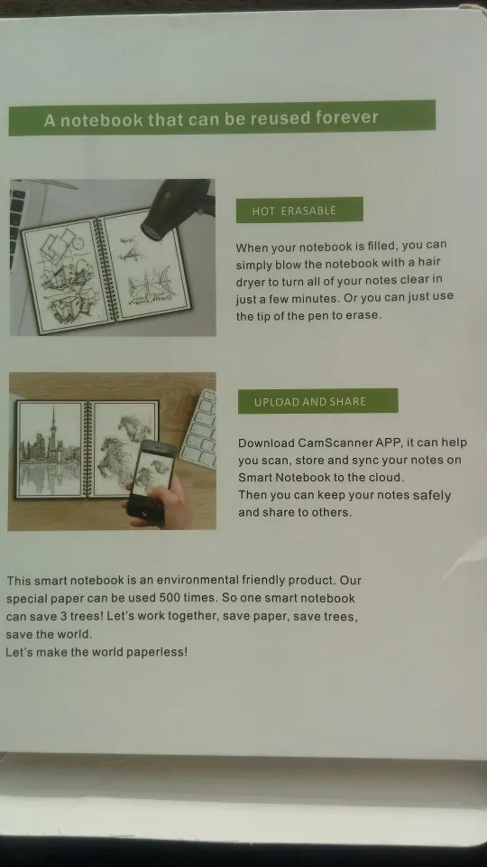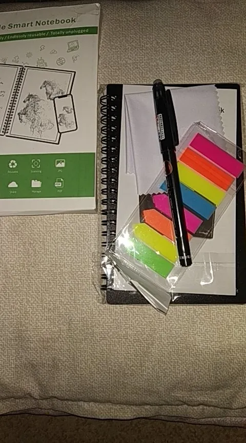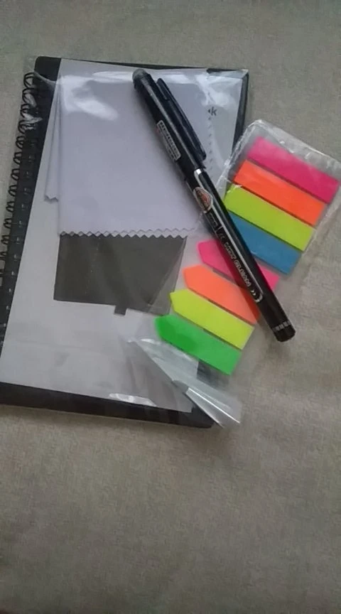 Супер-товар! Супер-цена! Экстримально-быстрая доставка! Итак, блокнот достался мне за 1 цент, чему я безмерно рада! Отправляли из России, хотя нигде не написано было, что товар из России. Ну или я слепошара Приехал за несколько дней, восторгу не было предела!!! Был упакован в коробочку фирменную. В комплект идёт тряпочка для стирания, ручка, комплект самоклеящихся закладок и инструкция, правда на английском языке. Волшебство есть) Надписи отлично пропадают, если подуть на них феном с горячим воздухом. Другие методы пока не пробовала. Единственное, что омрачило мою радость, это то, что ручка приехала повреждённая. Вероятно, при транспортировке где-то ударили, или бросили. Но, ребят, за один цент это вообще ничего не значит. Тем более, что всё остальное просто ВАУ!!! Однозначно рекомендую и продавца и товар. Фото блокнота без надписи сделано после воздействия феном на надпись.