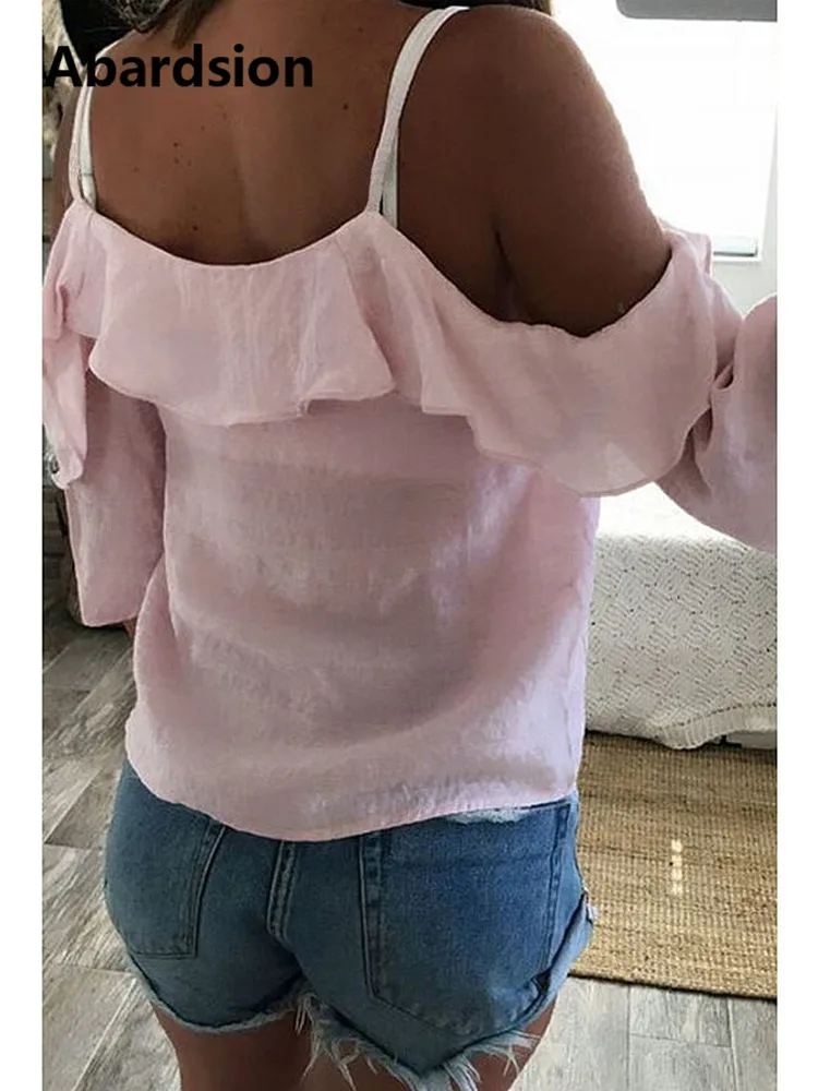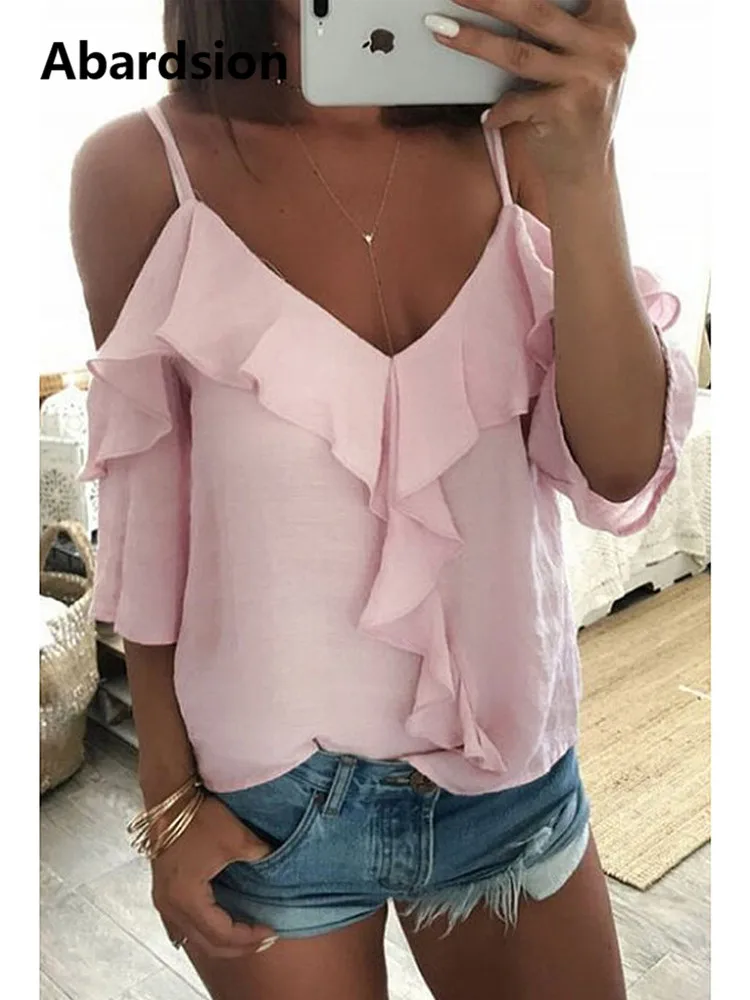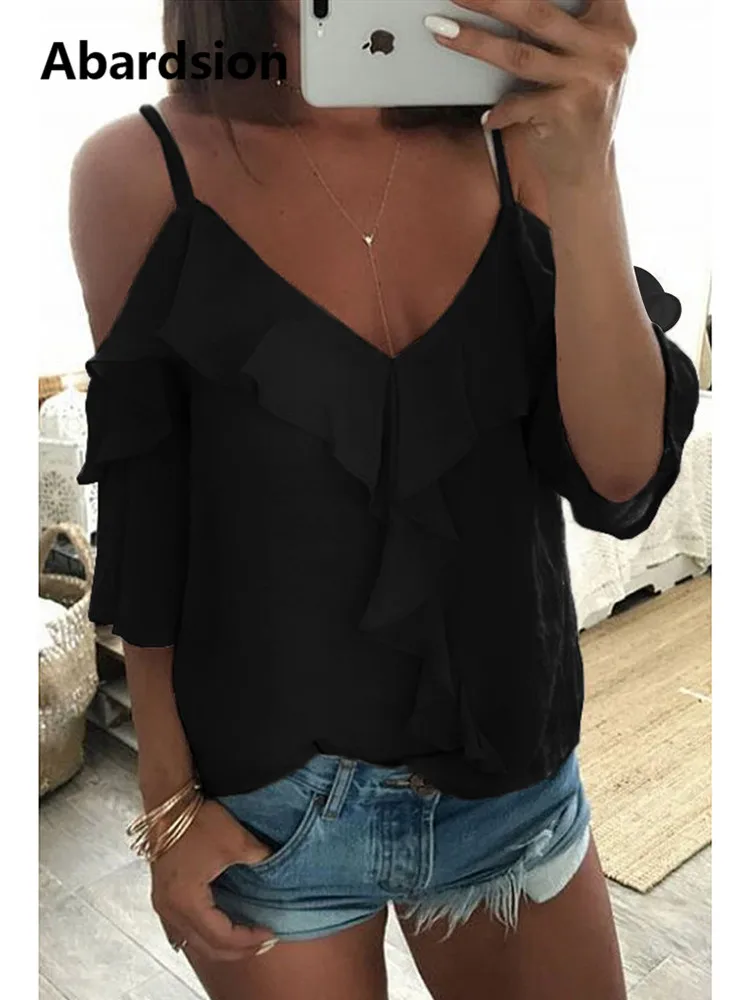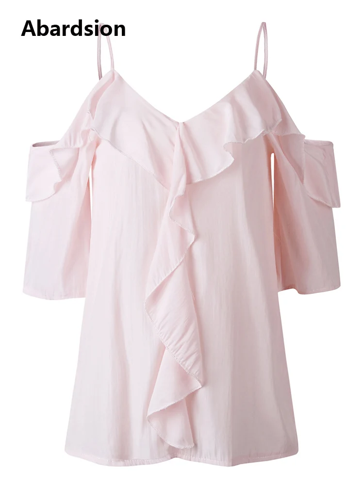 Женская блузка с открытыми плечами Abardsion, белая блузка на бретельках с коротким рукавом и оборками, лето 2019
