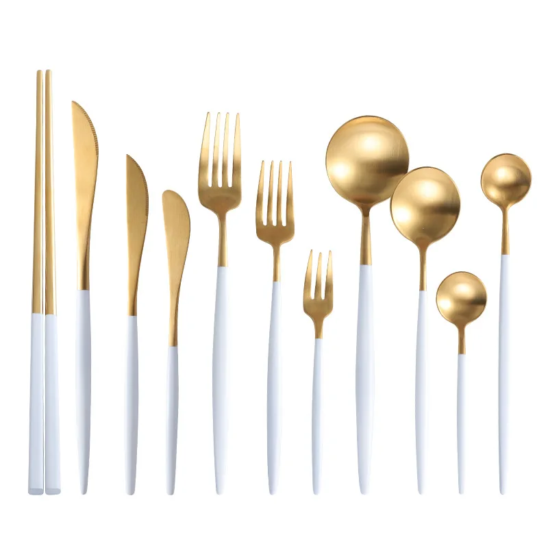 Набор столовых приборов из нержавеющей стали 1810, из белого золота...