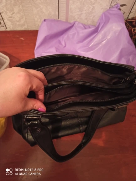 Сумка пришла вовремя. Соответствуе описанию. Но, конечно, не натуральная кожа за такую цену. Форма сумки и отделения очень удобные. В целом покупкой довольна. Спасибо продавцу.